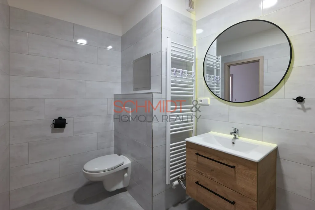Rekonstrukce uvnitř bytu byla rozsáhlá. Nové rozvody elektřiny i vody, do detailu dotažená koupelna včetně vestaveného nábytku a ambientního osvětlení, kuchyňská linka se spoustou úložného prostoru, granitovým dřezem a zabudovanými spotřebiči, obložkové zárubně, bezpečnostní vchodové dveře, sádrokartonové podhledy (doplněné minerální vatou) a další…V teplých dnech poslouží klimatizace umístěná v obývacím pokoji s jídelnou a kuchyní (orientace na západ). Proti slunci i teplu dále ochrání nové venkovní elektrické žaluzie v obou ložnicích i obývacím pokoji.