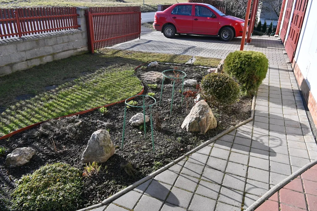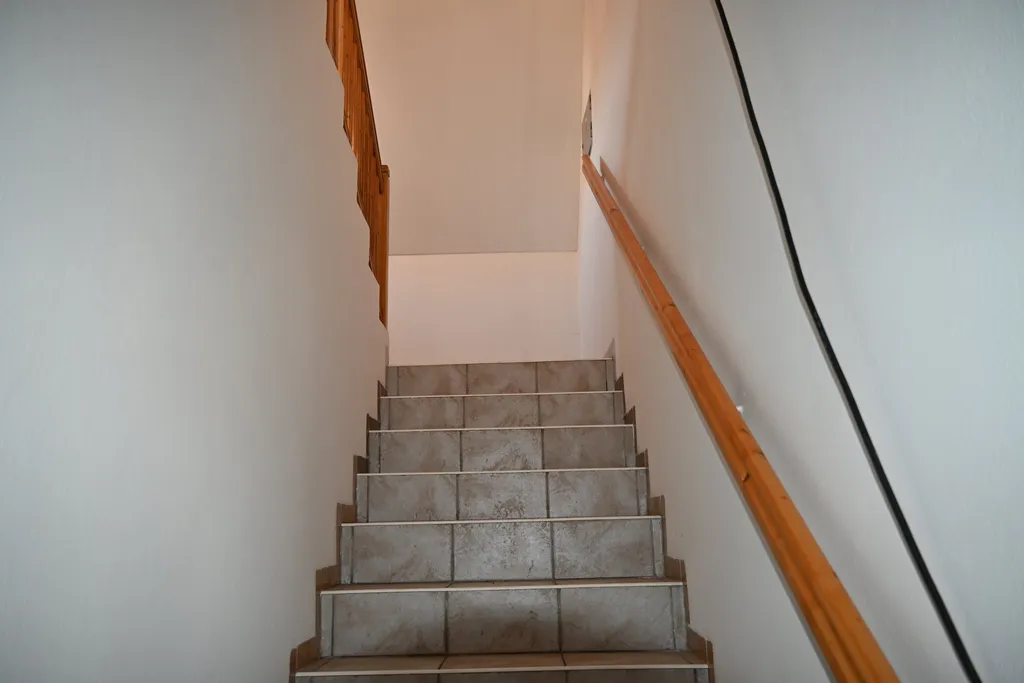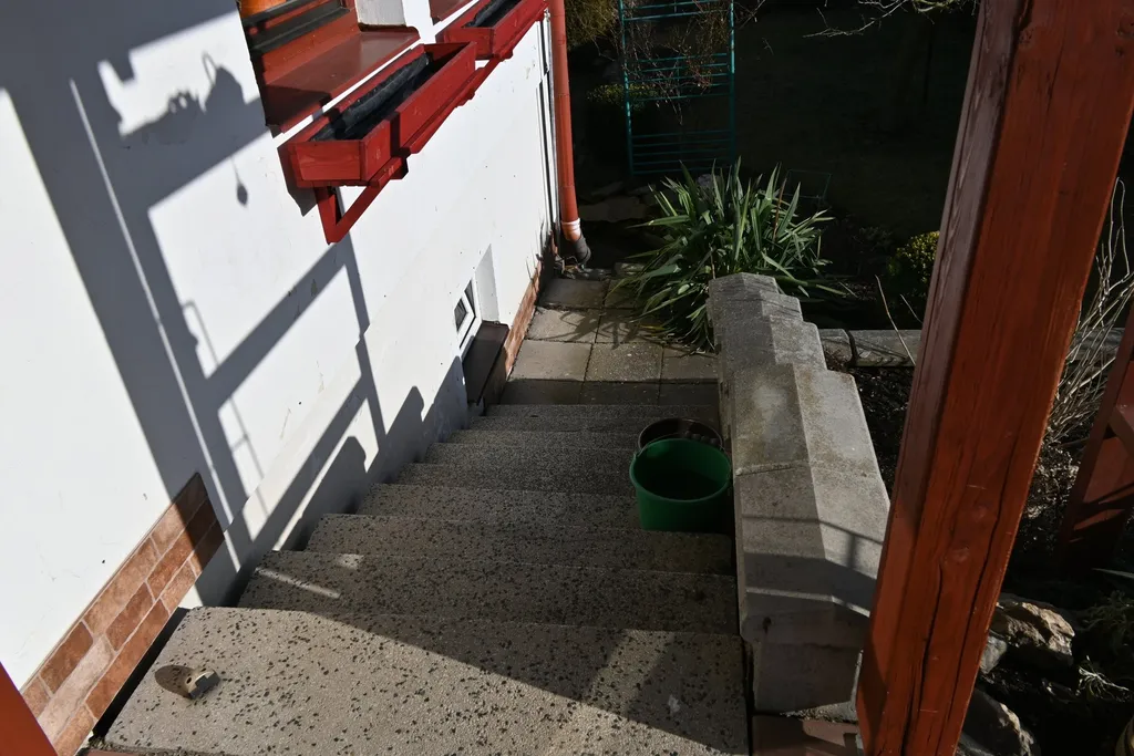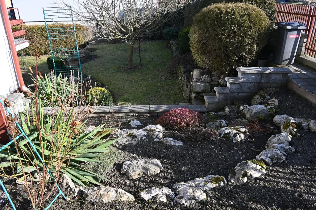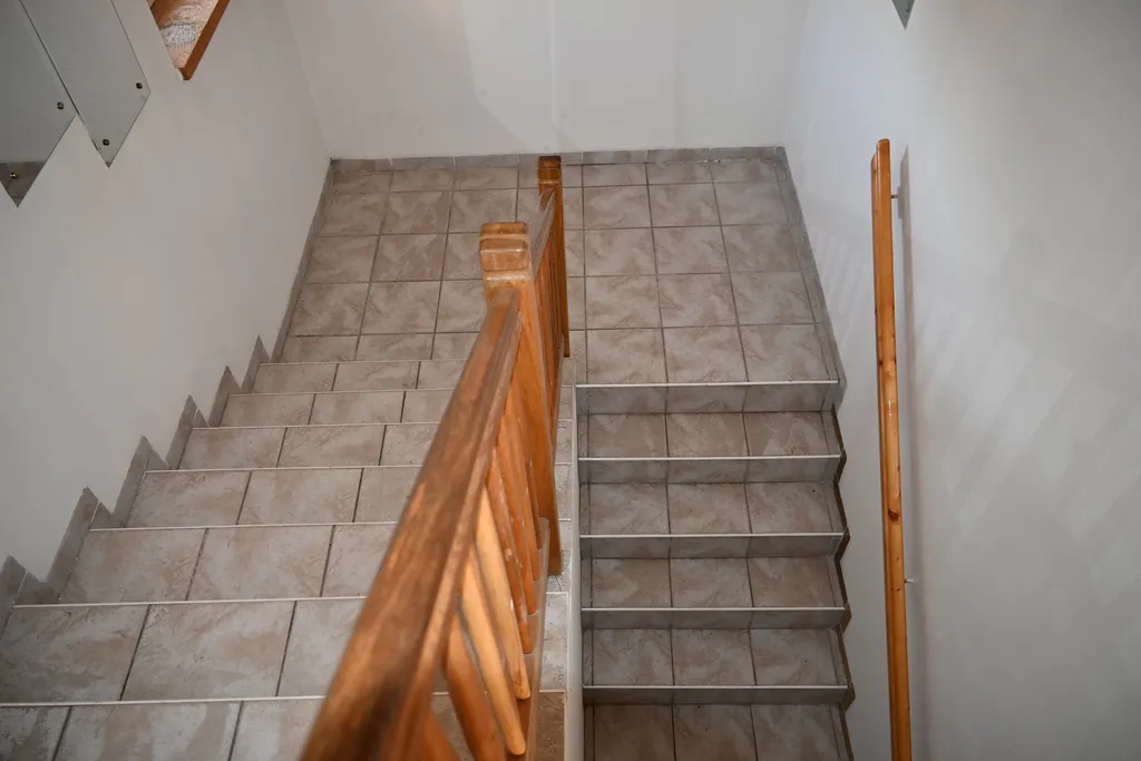 Dům je spojení dvou bytových jednotek, s velkou garáží pro 4 auta s příjezdem z komunikace. Další garáž je k dispozici přes zahradu pod domem. Každá bytová jednotka je napojena na vlastní elektroměr, koupelnu a wc.