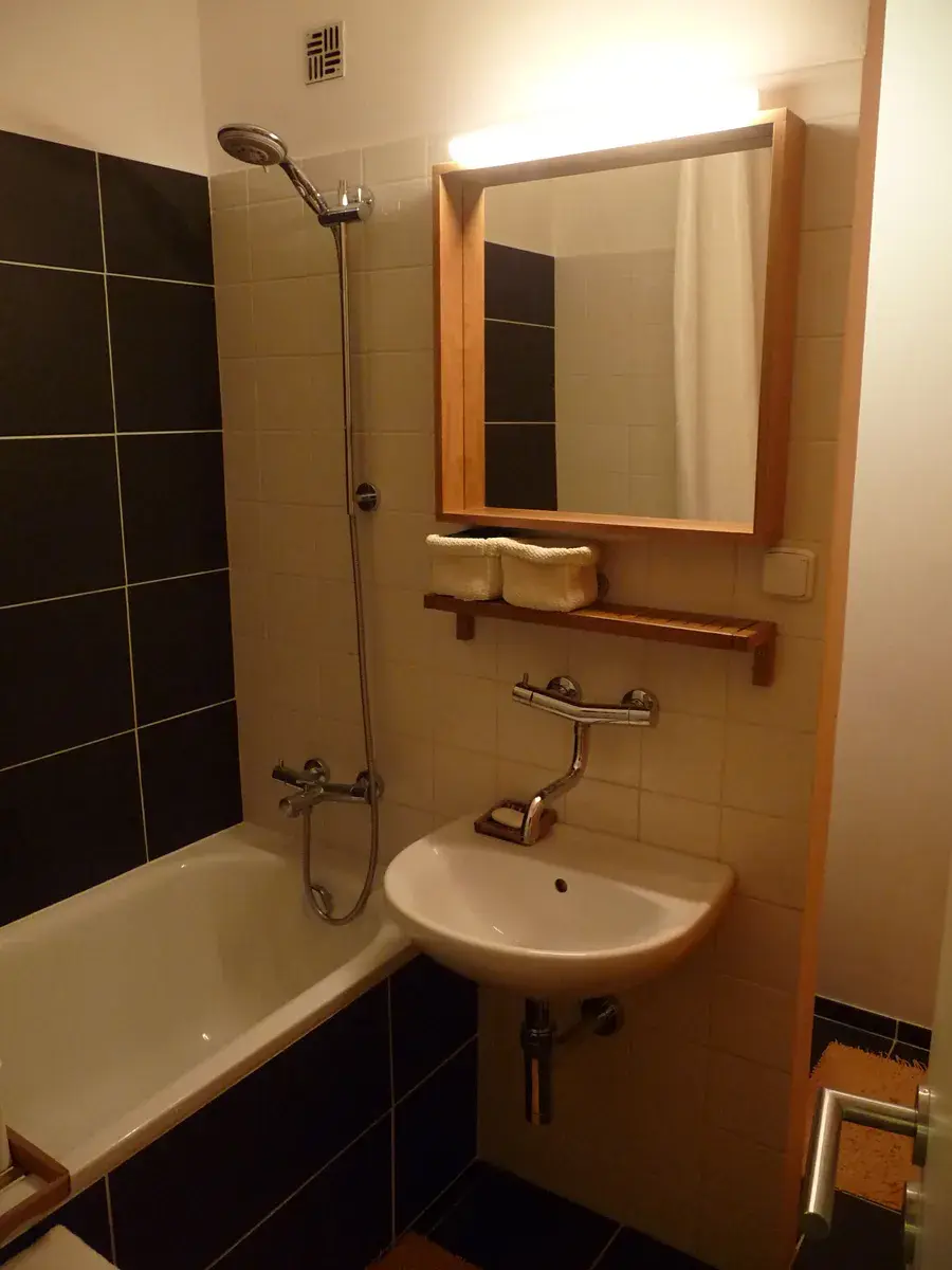 Dispozici bytu tvoří vstupní chodba, koupelna s vanou a odděleným WC, obytný pokoj a kuchyně (součástí je kuchyňská linka s vestavnou el. troubou, indukční varnou deskou a příprava pro pračku). K bytu patří 1 zděná sklepní kóje v suterénu.