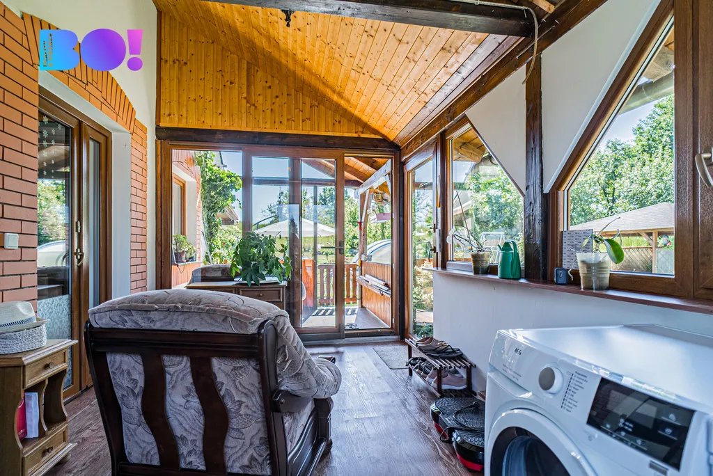 V přízemí je obývací pokoj, pokoj/zimní zahrada (vytápěný, okna trojskla), kuchyň, koupelna a zádveří.