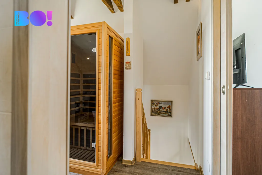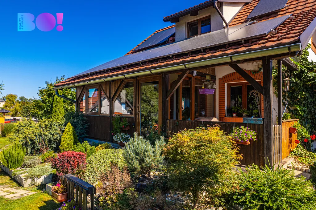 Nabízíme středně velký moderně stavěný cihlový rodinný dům s fotovoltaikou s nádherně upravenou zahradou s altánkem, krytým bazénem a druhým menším domem v rohu zahrady.