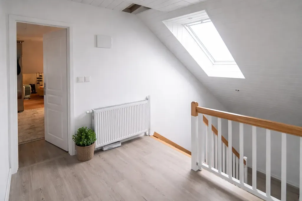 V patře plánována hlavní ložnice se šatnou (40 m2), dva samostatné pokoje (25 m2 a 25 m2), prostorná chodba a koupelna.
