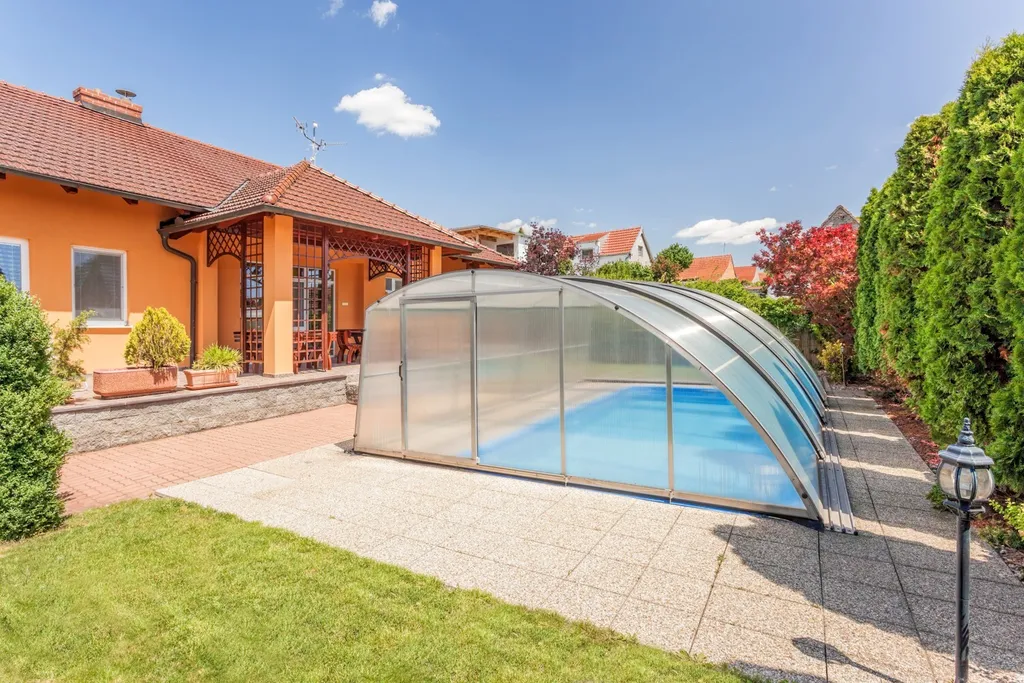 Ve výhradním zastoupení majitele, Vám zprostředkuji koupi prostorného cihlového rodinného domu s velkým pozemkem, zahradou, bazénem, vinným sklípkem, pergolou, dvou garáží a bytem o velikosti 3+kk v malebné vesničce Starovičky v okrese Břeclav.
