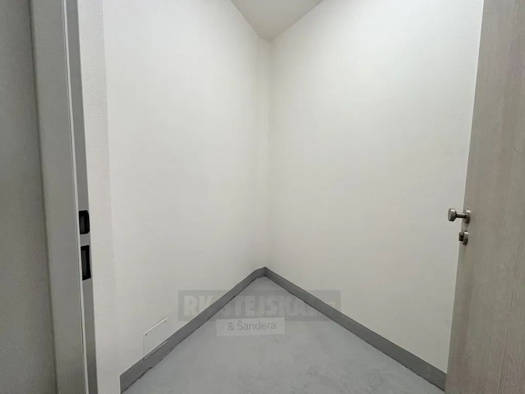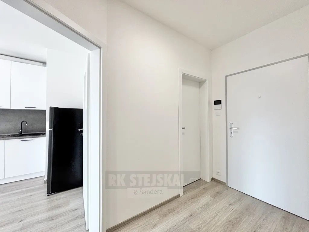 Při vstupu vás přivítá předsíň s dostatkem prostoru pro skříně. Moderní koupelna je vybavena vanou, toaletou a zrcadlem, s prostorem pro pračku. Hlavní prostorná obytná místnost se vstupem na balkon poskytuje dostatek denního světla. Kuchyňský kout s plně vybavenou kuchyní včetně spotřebičů – lednice, vestavná trouba, myčka nádobí, digestoř. Součástí pronájmu je skladovací komora - sklep, parkovací stání - spodní lift parker, a možnost užívání společné kolárny.