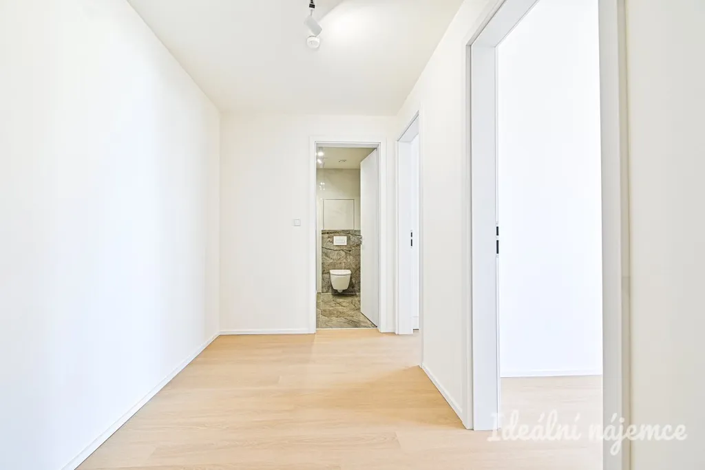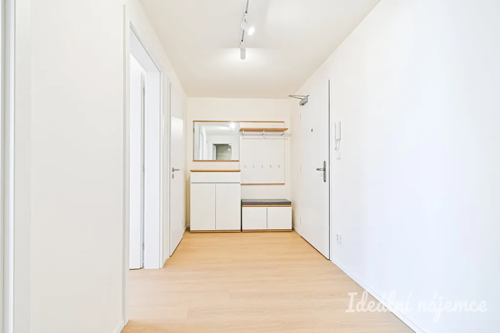 Dispozice je ideální pro jednotlivce nebo pár: obývací pokoj s kuchyňským koutem nabízí dost místa pro jídelní stůl i relaxační zónu, samostatná ložnice poskytne klid a soukromí. Byt je nevybavený, takže si ho můžete zařídit přesně podle svého stylu – od minimalistického po útulný „home office“ koncept. Moderní kuchyňská linka je zařízena veškerými spotřebiči jako lednice s mrazákem, mikrovlnná trouba, trouba, varná deska, digestoř a myčka. Koupelna je zařízena sprchovým koutem, umyvadlem se skříňkou a toaletou. Velkou výhodou bytu je praktická komora vybavena policemi.