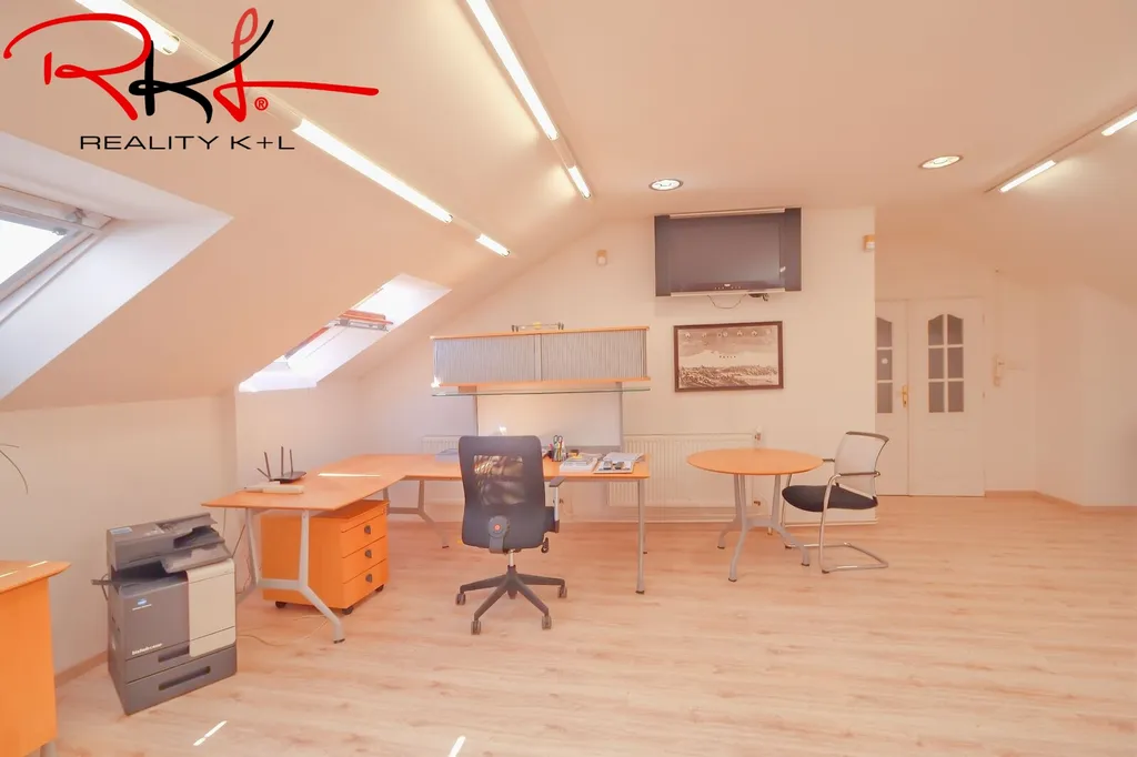 • druhá kancelář – 45,8 m² (součástí je kuchyňská linka se spotřebiči)