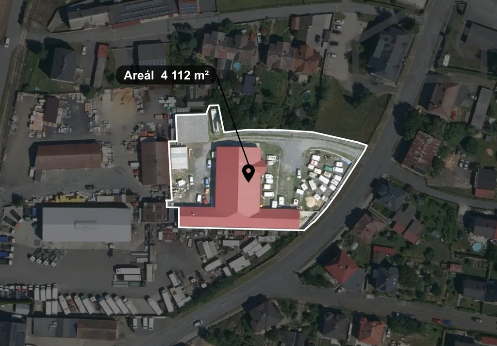Předmětem prodeje je ucelený, oplocený areál se zastavěnou plochou 1299 m2, ostatní navazující poloha je o výměře 2813 m2.