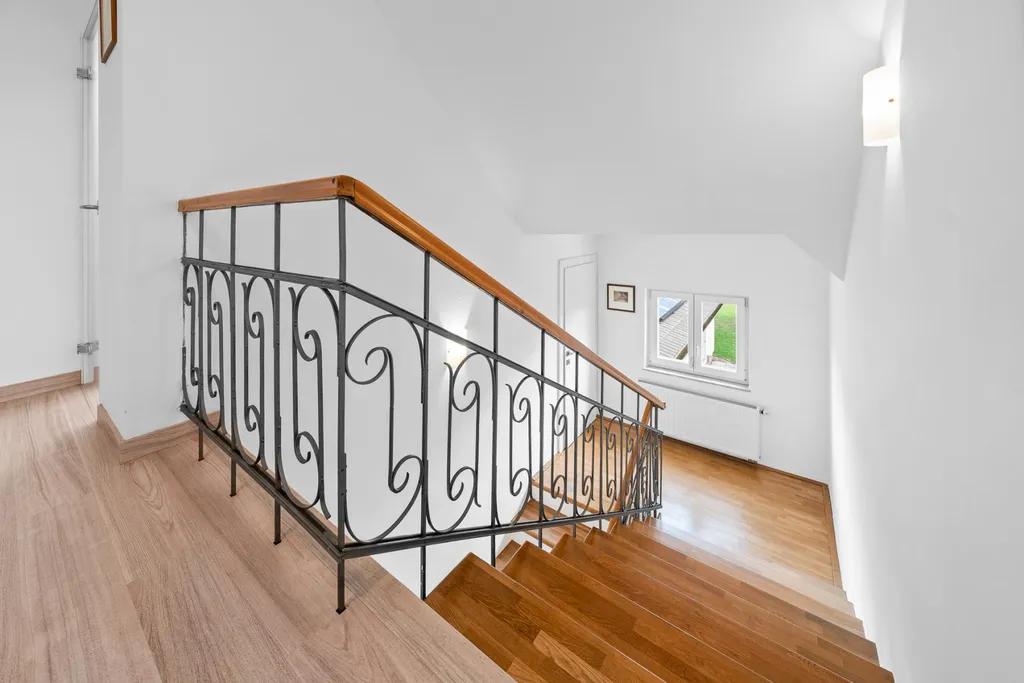 Ložnice s balkonem, pokoj s francouzským oknem, velká pracovna či pokoj pro hosty, šatna a podkrovní koupelna. Půdní prostory jsou aktuálně nevyužité a nabízejí další potenciál.