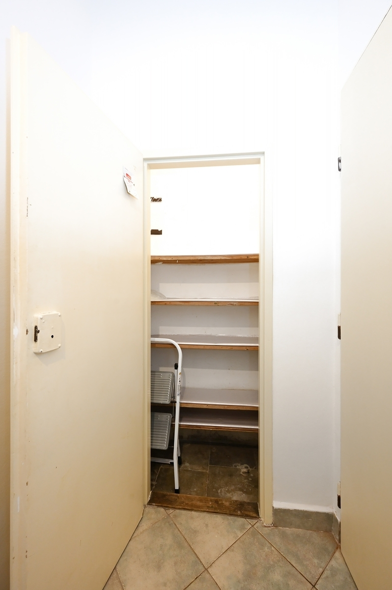 Po vstupu do bytu se nachází chodba s kuchyňskou linkou, která je vybavena sklokeramickou varnou deskou, digestoří a menší lednicí s mrazákem. Součástí chodby je také praktická komora, která nabízí dostatek úložného prostoru například pro potraviny, úklidové potřeby nebo sezónní věci.