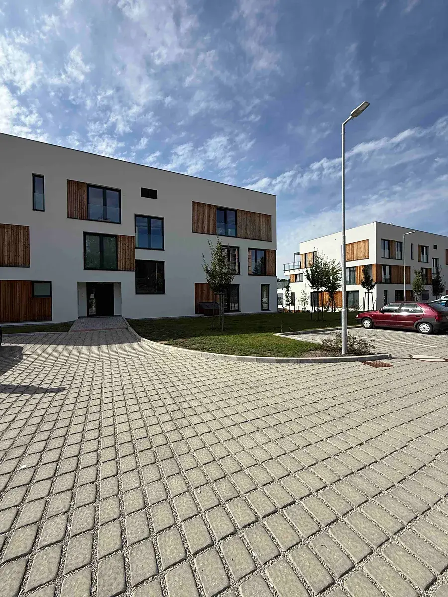 Byt disponuje prostornou terasou (12,44 m²) a vlastní předzahrádkou o rozloze 41 m² s uzamykatelným vstupem přímo z bytu. Zahrádka je upravena umělým trávníkem a nabízí ideální prostor pro relaxaci i soukromí.