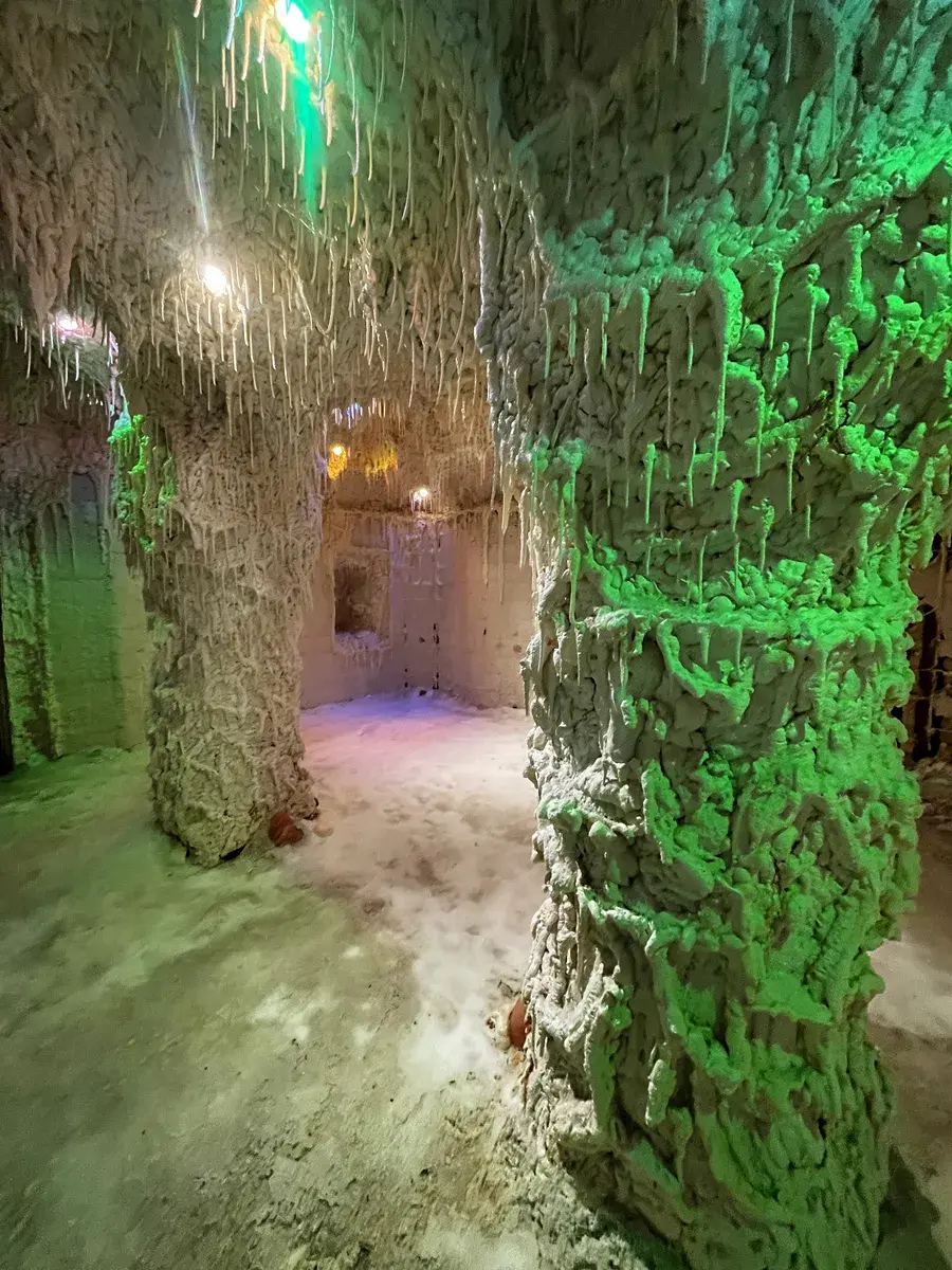Ve sklepních prostorách se nachází solná jeskyně s kompletním zázemím – od recepce přes šatny až po sociální zařízení. V provozu byla řadu let a je plně vybavená k dalšímu spuštění. Můžete ji znovu otevřít jako relaxační a wellness zónu, nebo tento unikátní prostor přestavět dle svých představ.