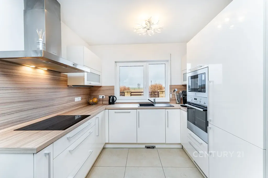 Vybavení: Kuchyně je osazena moderními spotřebiči (sklokeramická deska, trouba, myčka, lednice s mrazákem, mikrovlnka).