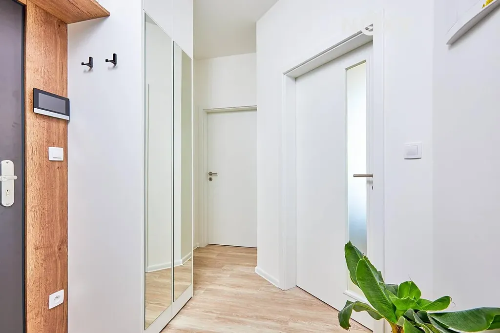 Velkým BENEFITEM tohoto bytu je, že je již ZAŘÍZENÝ. Kuchyně, ložnice a předsíň je kompletně vybavena nábytkem na míru. Díky tomu jsou zde vyřešené i úložné prostory a nového majitele nečekají žádné další významné náklady spojené se zařízením bytu.