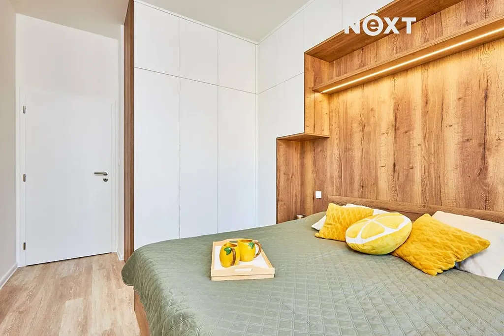Byt o podlahové ploše 62,2 m² a prostornou terasou o velikosti 15,9 m² situovanou na SV, splňuje požadavky moderního bydlení pro páry a mladé rodiny s dětmi. Elektrické předokenní žaluzie, kvalitní okna s trojskly, vytápění i ohřev vody zajištěný moderním systémem CZT s vysokým podílem energie z obnovitelných zdrojů pak zajišťují vysoký komfort bydlení. Sestává se z předsíně, koupelny, samostatného wc, pokoje, ložnice a obývacího pokoje s jídelnou a kuchyňským koutem. K bytu také náleží garážové stání a velkorysá sklepní kóje o velikosti 5,2 m², které jsou umístěny v 1.podzemním podlaží a dostanete se k nim pohodlně výtahem.