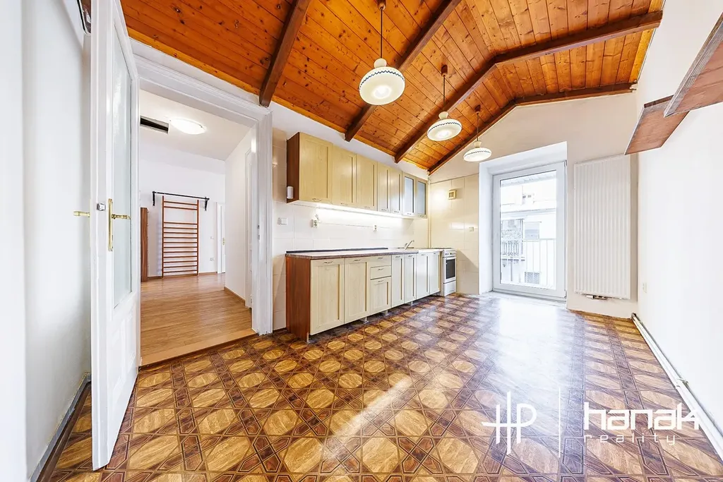 Příjemnou atmosféru zde tvoří vysoké stropy a krásné, dřevěné dveře. Byt byl rekonstruován před 20 lety, koupelna je zánovní, vše je velmi udržované. Dispozice umožňuje předělání na 4+1.