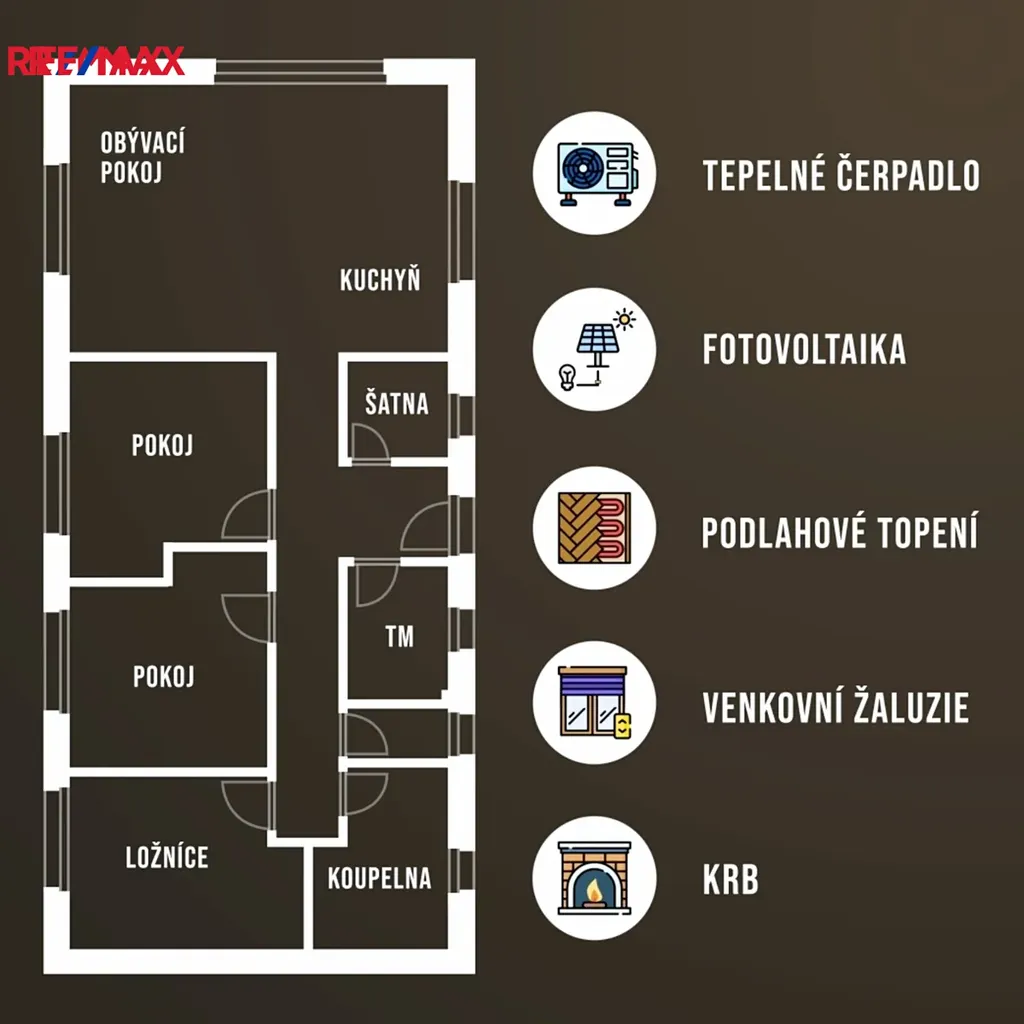 K pohodlí a kvalitě bydlení přispívají i další prvky, jako jsou: podlahové vytápění, venkovní žaluzie, trojskla, 180 litrová nádrž na teplou vodu či moderní vinylové podlahy. Dominantním prvkem hlavní obytné části jsou velká francouzská okna, která nejen prosvětlují interiér, ale zároveň poskytují nádherný výhled do okolní zeleně. Díky umístění mimo klasickou satelitní zástavbu zde získáte skutečný pocit soukromí a kontakt s přírodou.