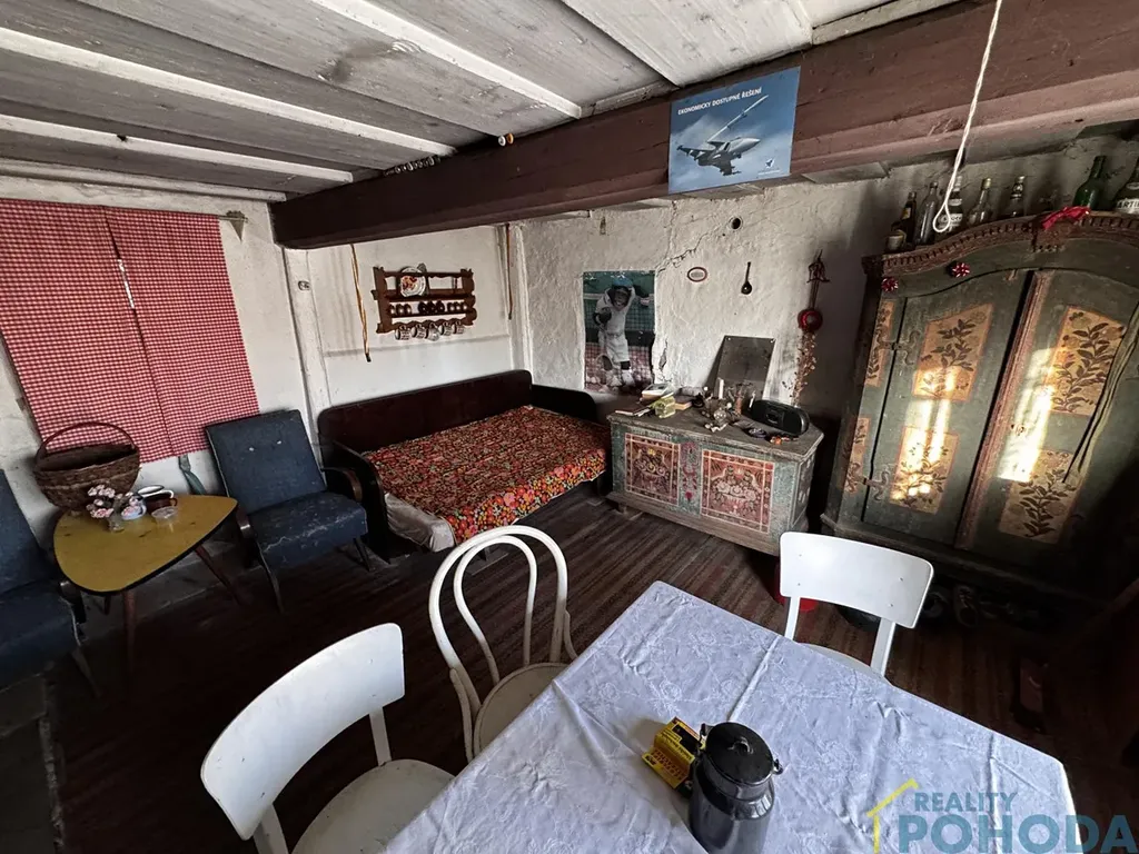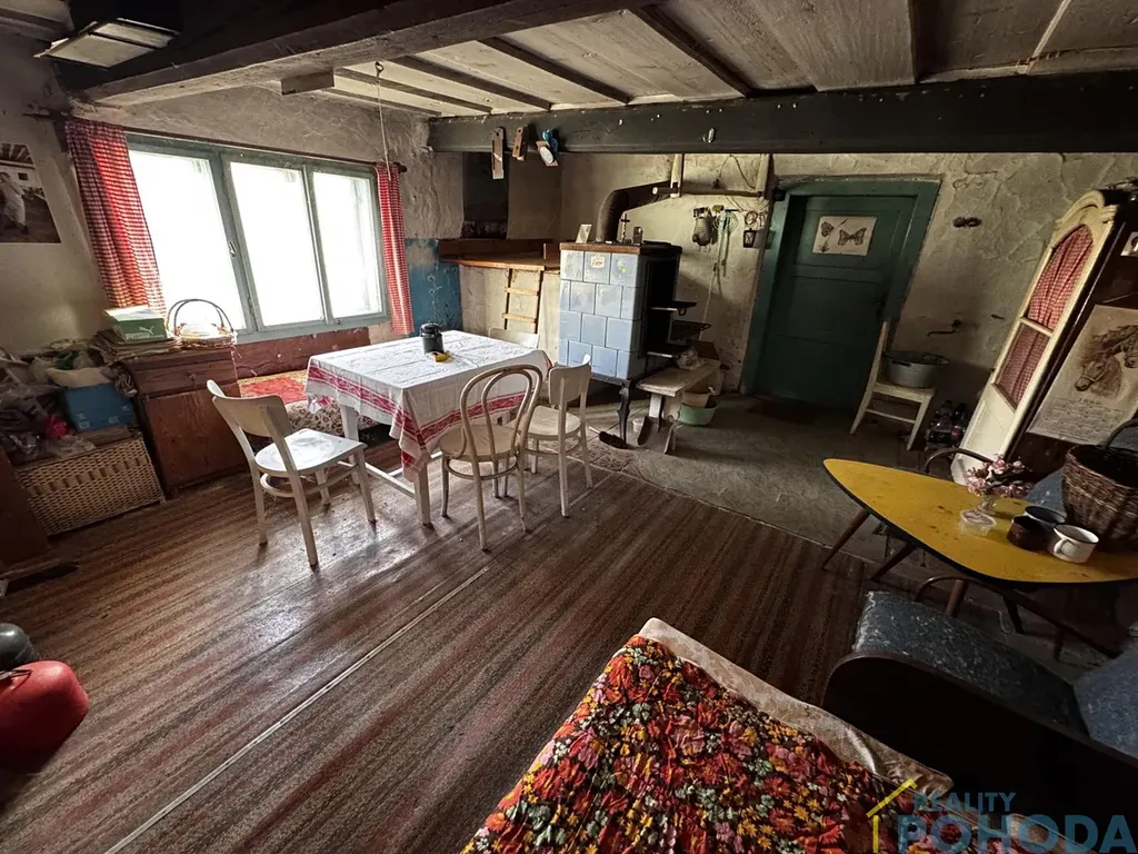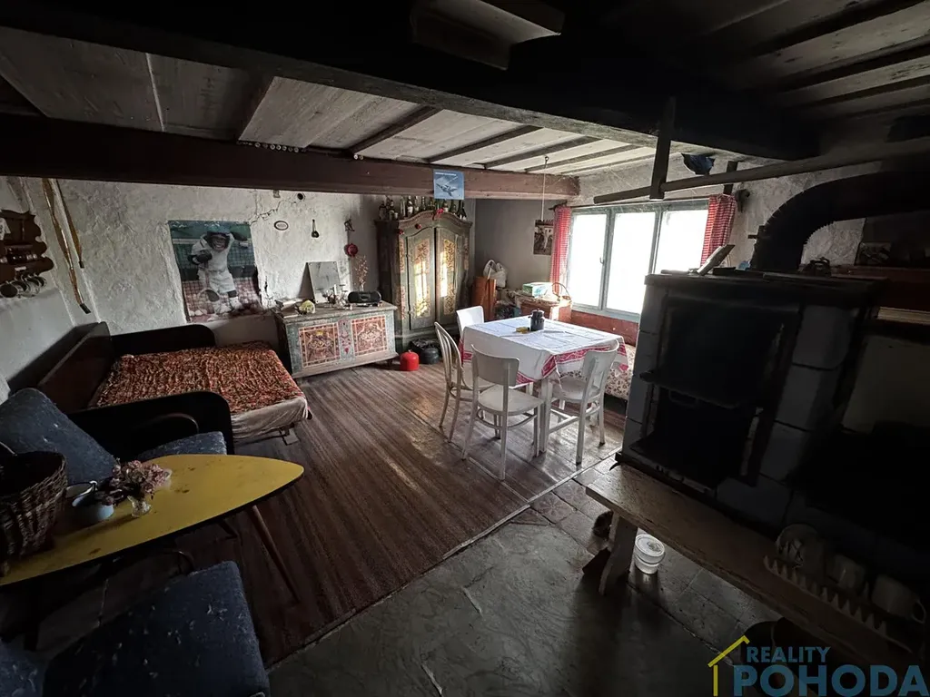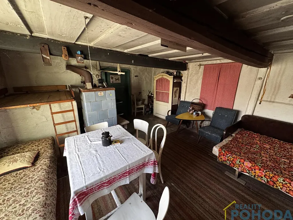 Malá chaloupka, kde se zastavil čas a vzpomínky visí ve vzduchu. Domek do L se zápražím, malým dvorkem a stodolou, šeptá příběhy minulých generací. V obytné místnosti u kachlových kamen stojí lavička, jako by někdo právě vstal, a pohovka připomíná poobědní odpočinek, který tu kdysi patřil ke každodennímu životu. Tato chaloupka je výzvou pro ty, kdo mají představivost. Každý kout tu vypráví svůj příběh a čeká, až mu rekonstrukcí vdechnete nový život.