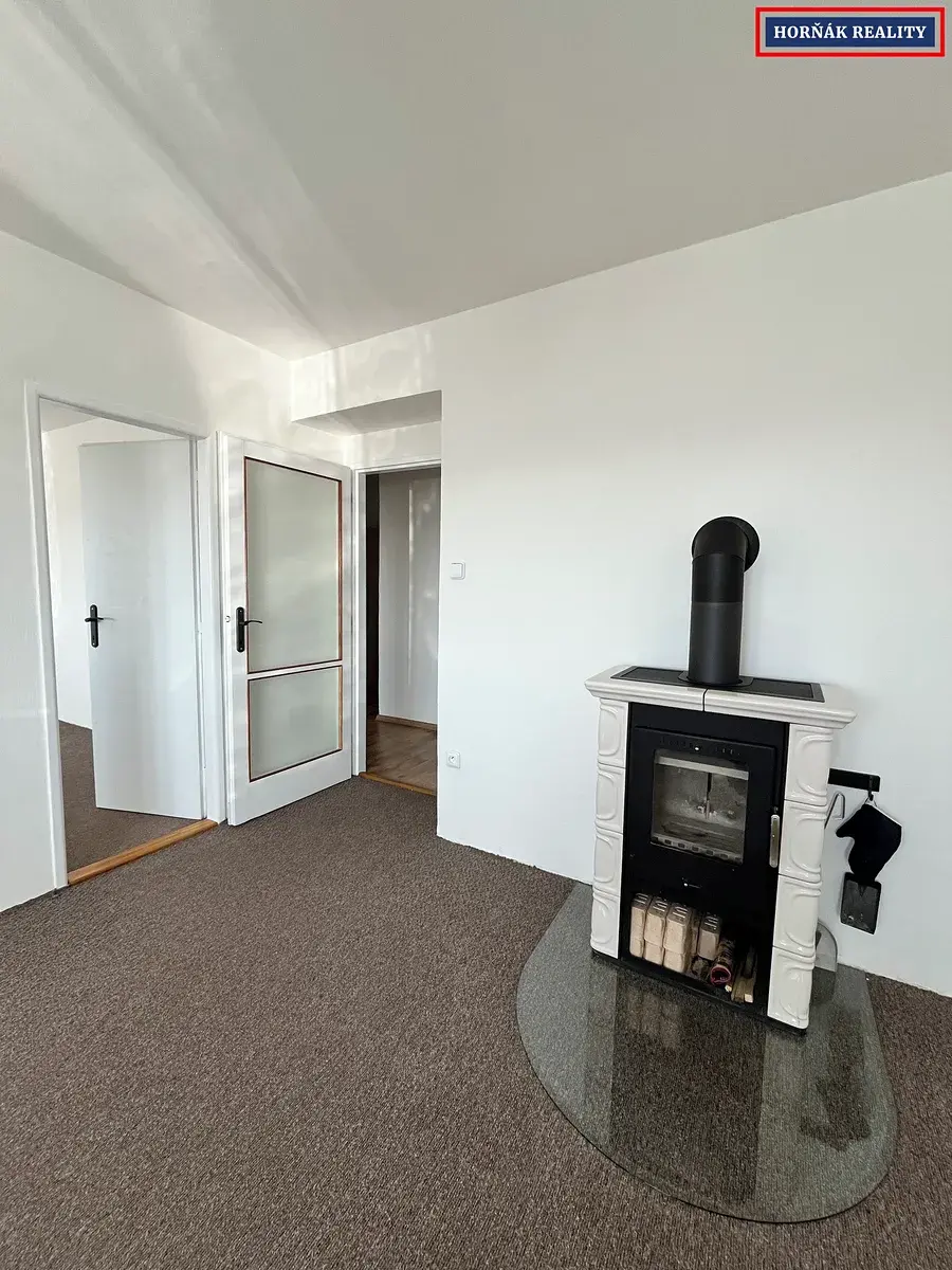 V obývacím pokoji je možnost využití krbových kamen.
