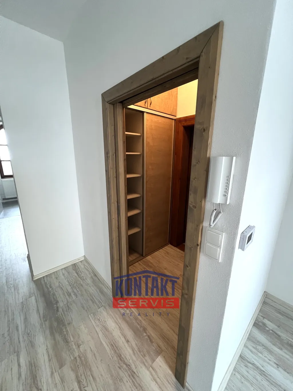 Velkým benefitem bytu je prostorná vestavěná skříň ve vstupní chodbě, která poskytuje dostatek prostoru a pomáhá udržet byt vzdušný a prostorný.