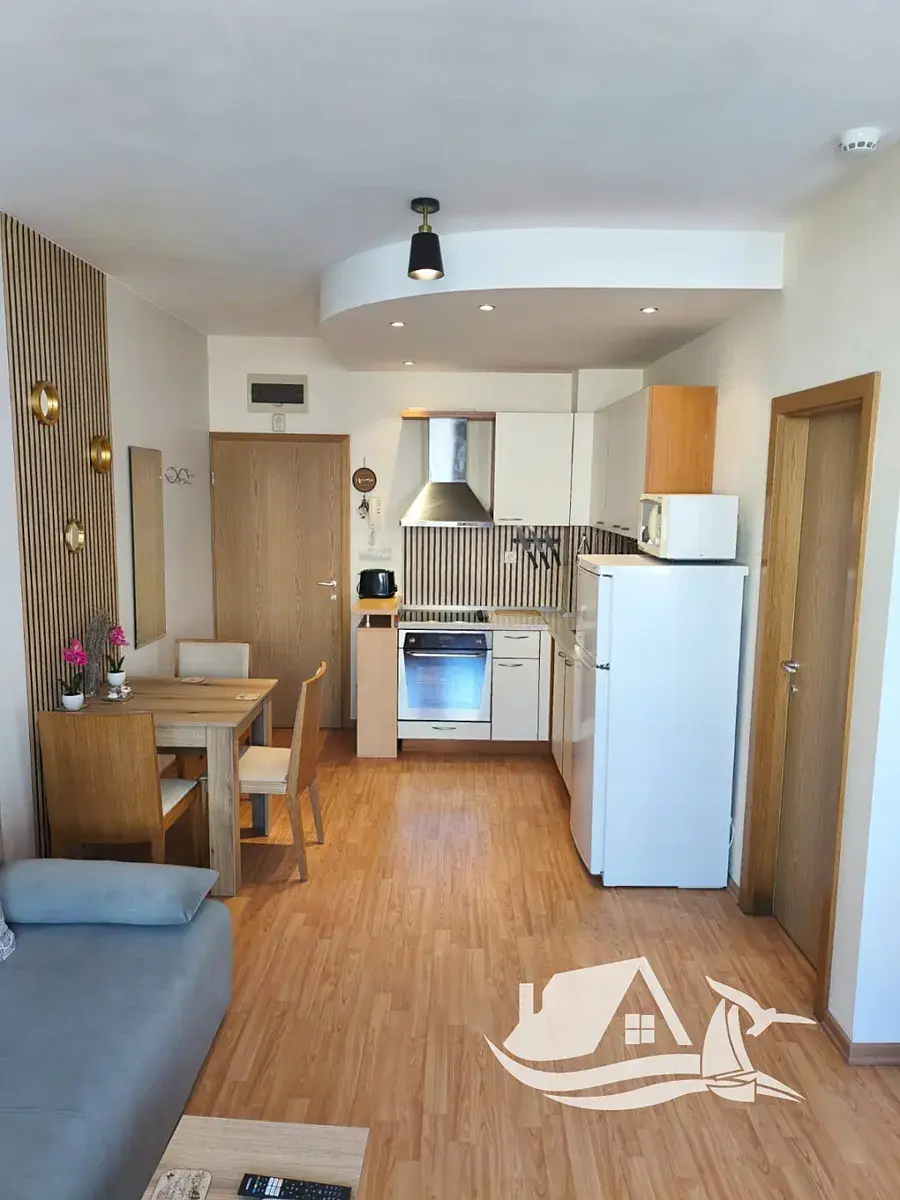 Otevřete balkonové dveře a ucítíte teplý jižní vánek. Moře je na dosah, jeho hladina se jemně třpytí a den začíná bez spěchu. Ráno je tiché, odpoledne zalité sluncem a večer se nese v uklidňujícím rytmu vln. Přesně takový život nabízí tento zařízený dvoupokojový apartmán v první linii v prestižním rezortu Garden of Eden, v elegantním letovisku Sveti Vlas.