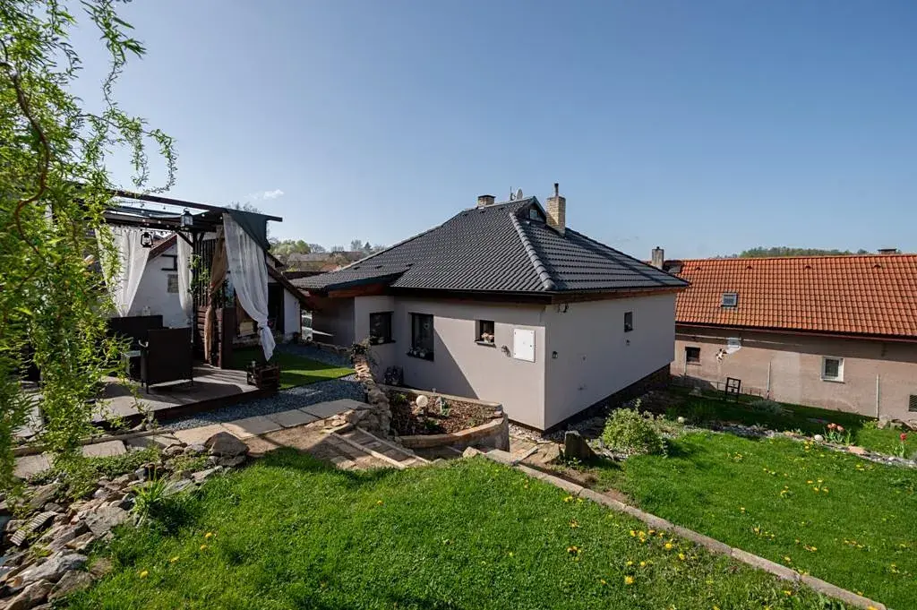 - Dům prošel v roce 2020 kompletní rekonstrukcí nová střecha, okna, podlahy, zateplení, fasáda, rozvody vody i nová elektroinstalace. Nemovitost je tedy bez nutnosti dalších větších investic.