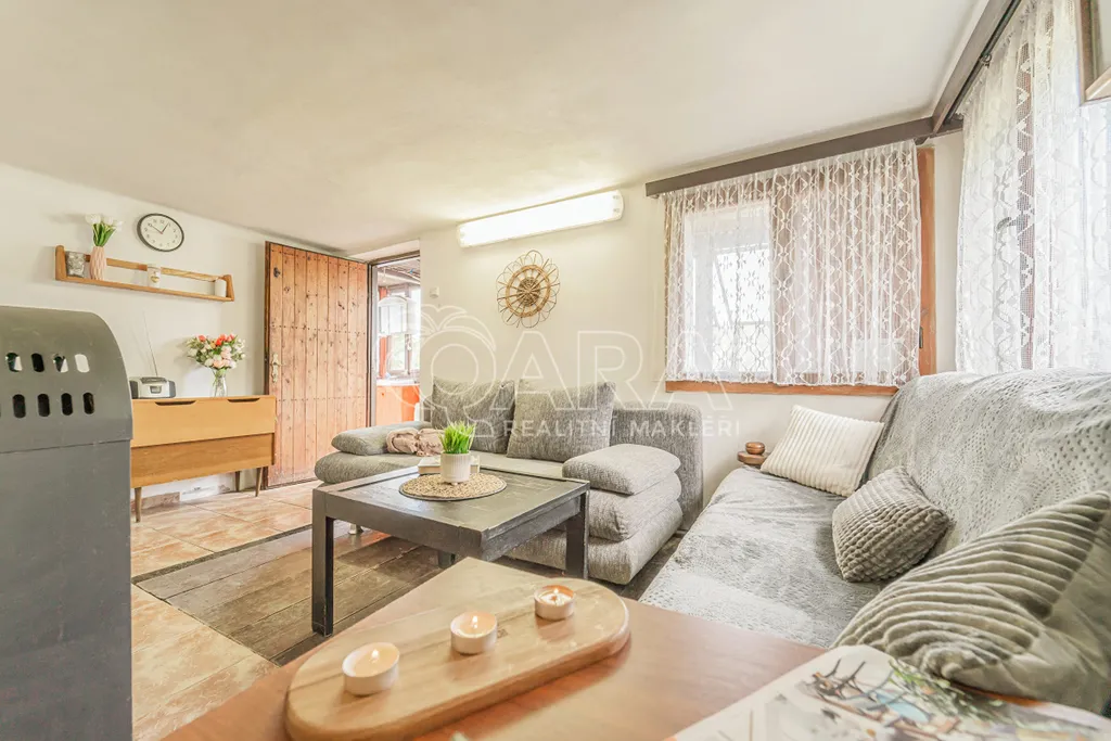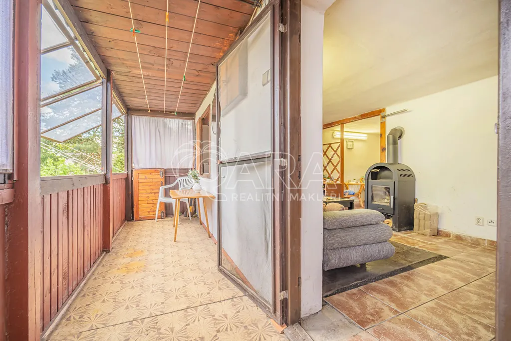 Samotná chata o ploše 56 m2 je postavená na zděné podezdívce a kombinuje dřevěný a zděný charakter. Díky své dispozici nabízí pohodlí i pro delší pobyt. Kuchyň s vybavením navazuje na obývací pokoj s kamny na tuhá paliva, které v jarních a podzimních měsících vytvoří nejen teplo, ale i atmosféru. V horním patře se pohodlně vyspí čtyři lidé – ideální pro rodinu, ale i pro přátele, kteří za Vámi mohou přijet.