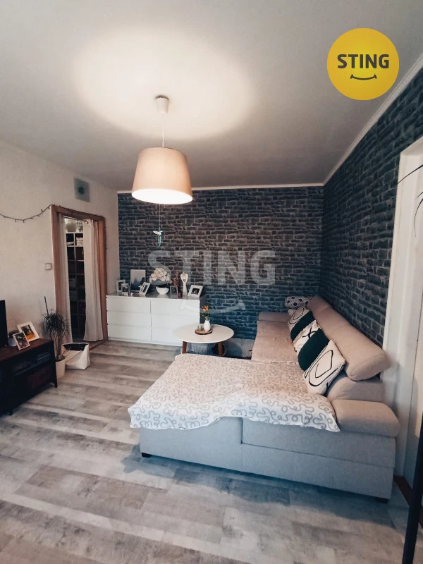 Slunný byt je situovaný v přízemí se sklepní kójí, sušárnou a kolárnou - bez balkónu s hezkým výhledem do zeleně a na louku s klidnou tichou atmosférou přesto, že je v blízkosti menší nákupní zóna a autobusová zastávka.