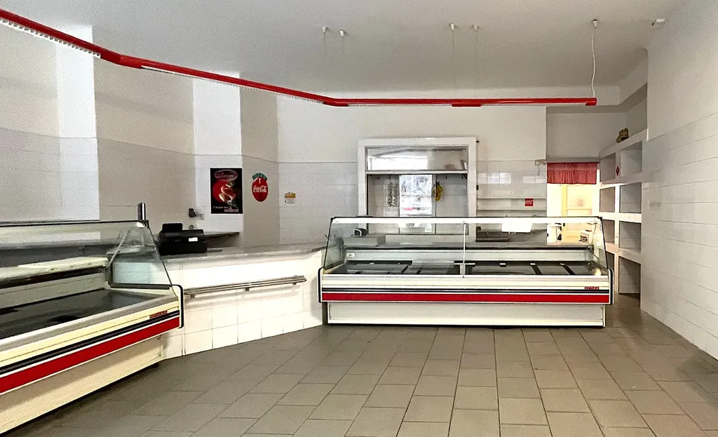 Prostor je členěn na vstupní prodejní část, na kterou navazuje střední část včetně dvou chladicích boxů, které lze v případě potřeby a dohody s majitelem demontovat.