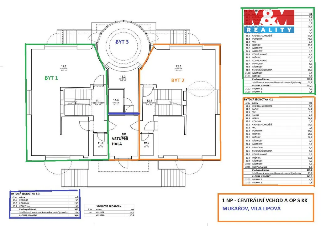 Vila se třemi bytovými jednotkami se nachází v atraktivní vilové části Mukařova, přičemž hned za domem je les.