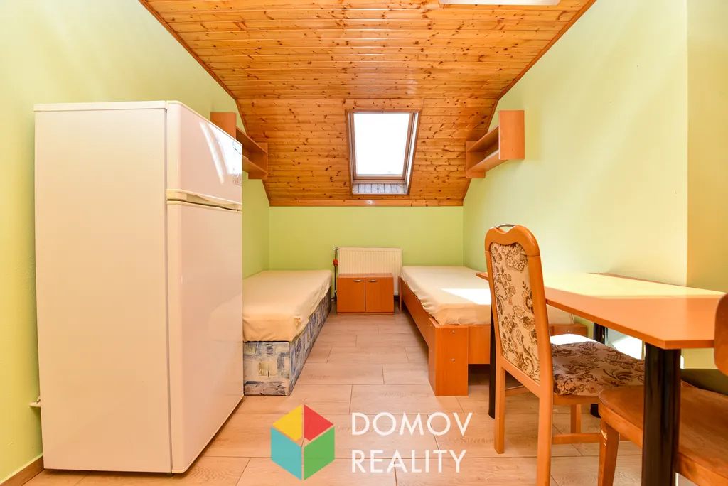 Pokoj je vhodný pro dvě až tři osoby. Kuchyň a koupelna jsou sdílené s ostatními pokoji v domě. Celková cena za tento pokoj pro dvě osoby je 11 000,- Kč měsíčně, pro tři osoby je cena 12 000,- Kč, a zahrnuje všechny poplatky a energie.