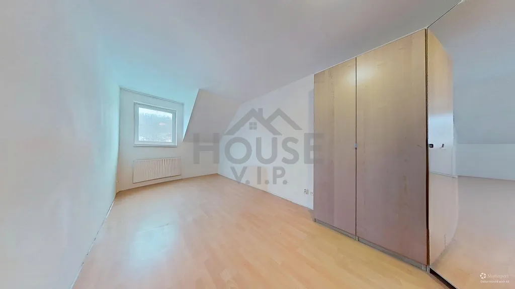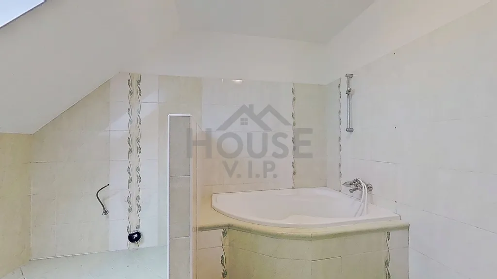 V prvním patře se nachází koupelna se sprchovým koutem, rohovou vanou a toaletou a dále tři samostatné pokoje, z nichž jeden je vybaven vestavěnou rohovou skříní. Druhé patro (podkroví) nabízí velkorysý pokoj se šikmými stropy, který může sloužit například jako ložnice, pracovna nebo herna. Dům je ve velmi dobrém technickém stavu, nicméně nový majitel může počítat s drobnými úpravami dle vlastních představ – zejména s výměnou podlahových krytin v obývacím pokoji a v podkrovním pokoji a případnou modernizací kuchyňské linky. Energetický štítek se vyhotovuje, proto zatím uvádíme "G".