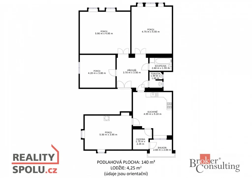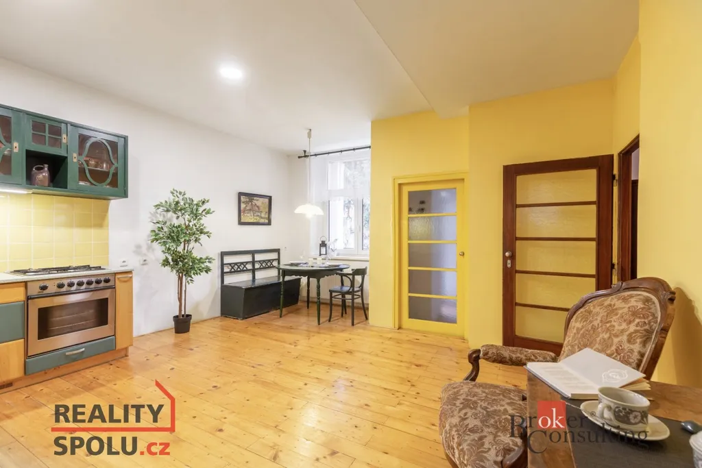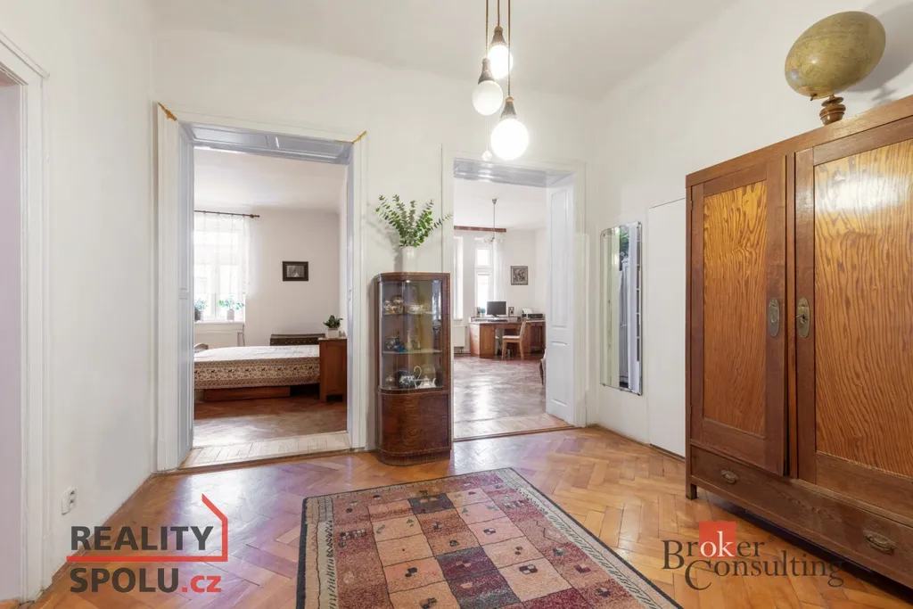 Dispozice 4+1 poskytuje výborné prostorové uspořádání vhodné pro komfortní rodinné bydlení, případně reprezentativní kombinaci bydlení a pracovního zázemí. Součástí bytu je kromě 135 m² užitné plochy také lodžie o výměře přes 4 m². Původní dřevěné podlahy a další autentické prvky dodávají bytu charakter, který je možné citlivou rekonstrukcí zachovat a zároveň propojit s moderním stylem bydlení.