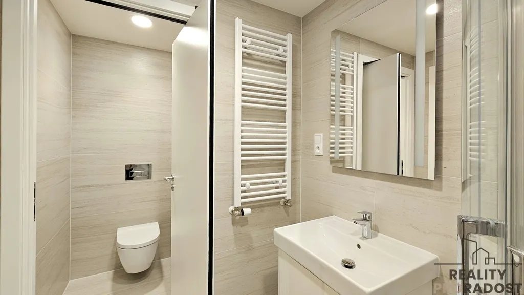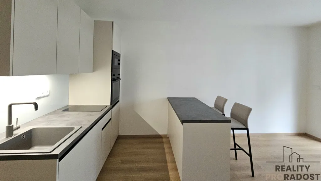 Dispozice bytu tvoří vstupní chodba vybavená šatní skříní, botníkem a věšákovou stěnou, koupelna se sprchovým koutem, samostatné WC a obývací pokoj s novou kuchyňskou linkou. Kuchyň je vybavena varnou deskou, elektrickou troubou, mikrovlnnou troubou, myčkou, lednicí a dřezem. Byt je proveden z kvalitních moderních materiálů a nabízí komfort nového bydlení.