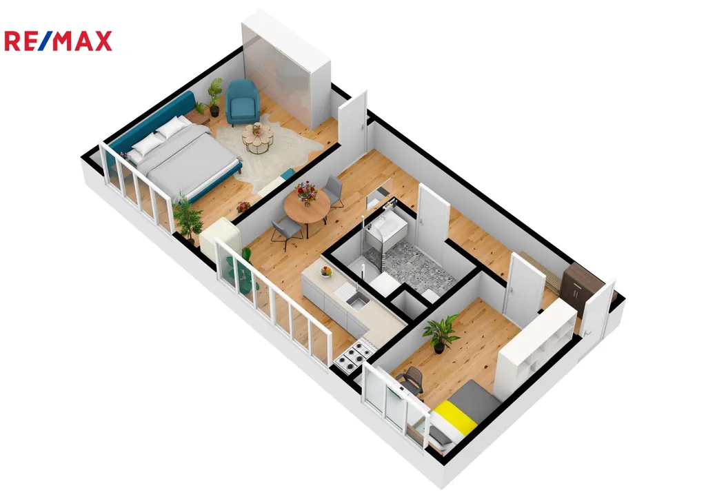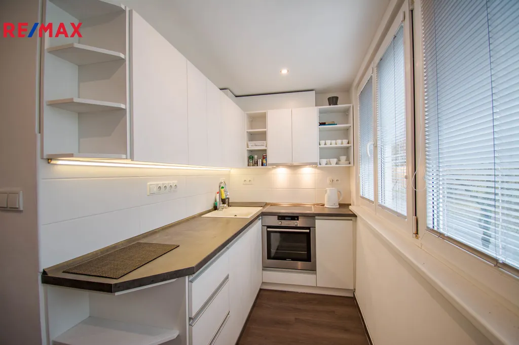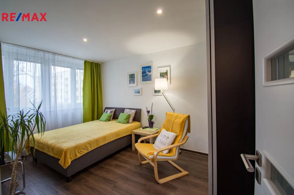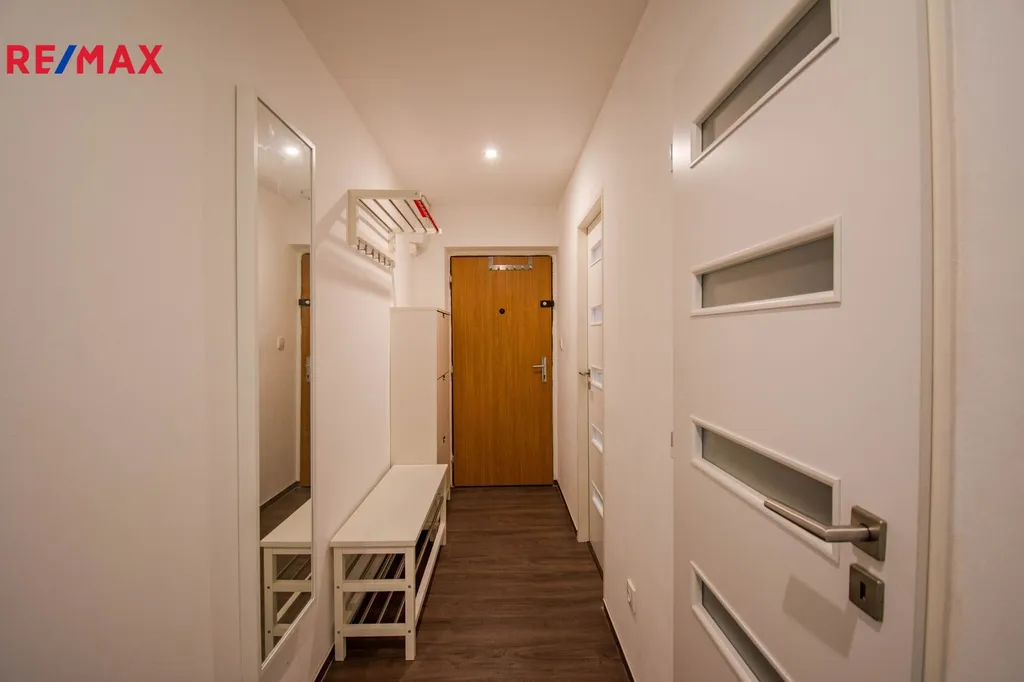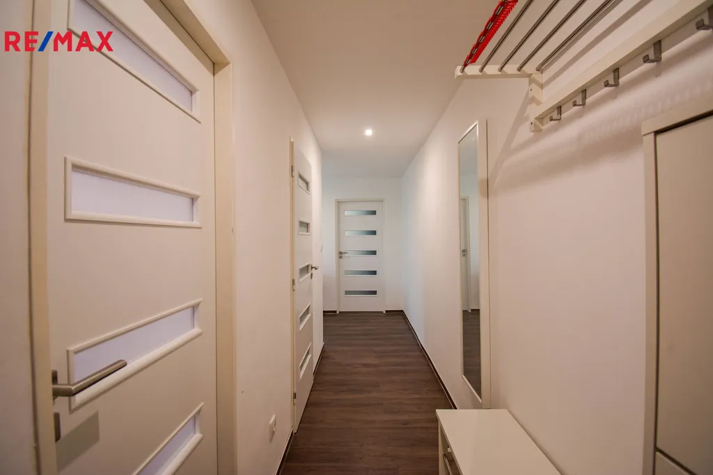 Byt prošel v minulosti celkovou rekonstrukcí a nabízí vstupní chodbu, koupelnu se sprchovým koutem společně s WC, jídelnu, kuchyň a dvě samostatné ložnice. Vybavení bytu je vestavěná šatní skříň, jídelní stůl + 4 židle, komoda, botník, lednice, pračka, myčka nádobí, el. trouba, základní nádobí a další drobné vybavení.