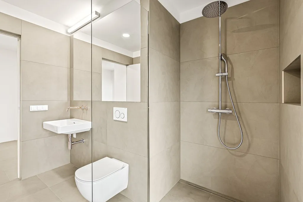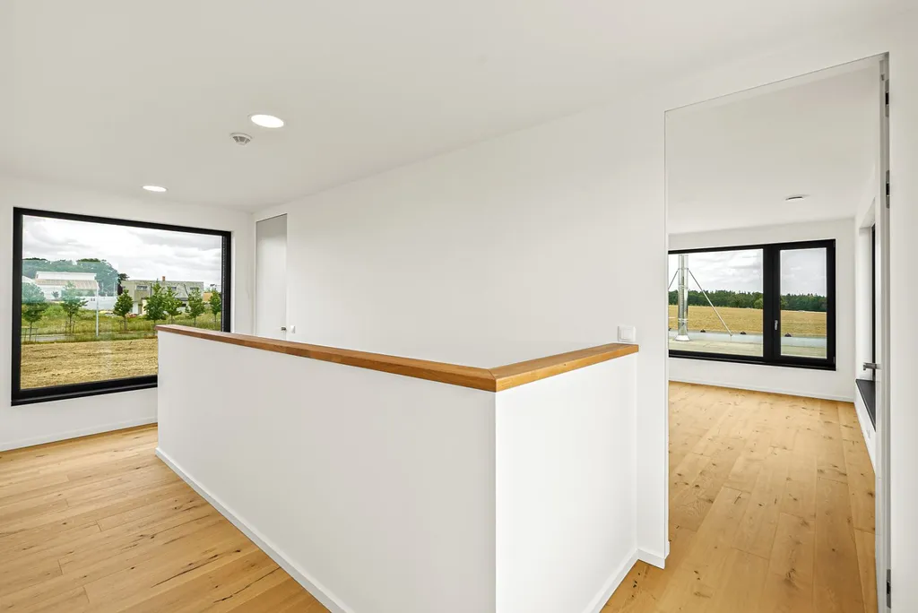 Doslova na každém kroku vás provází luxusní vybavení interiéru – třívrstvé dřevěné podlahy, velkoformátové italské dlažby a obklady 1,2 m x 0,6 m velkoformátová okna s trojskly.