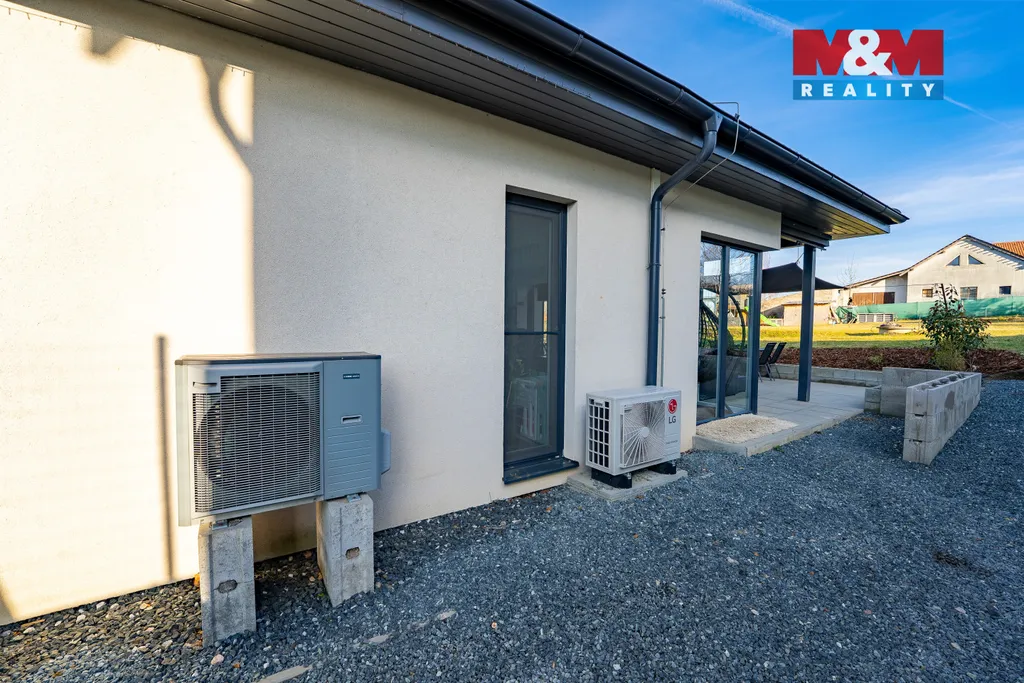 Prodej samostatného rodinného domu 4+kk o užitné ploše 120 m² v klidné části obce Bylany u Kutné Hory. Cihlová novostavba z r. 2018 na pozemku 1 432 m². Zastavěná plocha 148 m2. Přízemní moderní rodinný dům s velkou zahradou. Vytápění zajišťuje tepelné čerpadlo napojené na podlahové topení. V obývacím pokoji a jedné ložnici namontována klimatizace. Prostorný obývací pokoj s kuchyňským koutem a spíží, samostatné WC, úložný prostor na půdě. Z obývacího pokoje vstup na částečně zastřešenou terasu. Ideální volba pro rodinu. Na zahradě připraveny základy pro stavbu garáže. Zahradní domek. Prohlídky a více informací u makléře.
