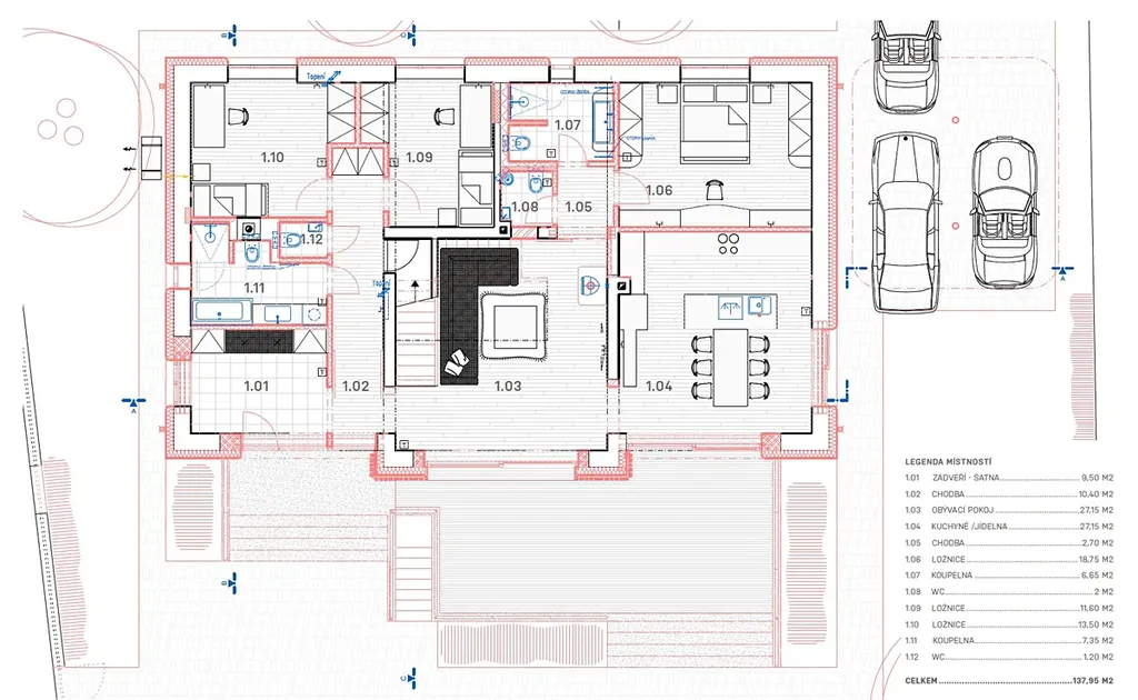 Dispozice jsou díky využití půdních prostor se zděnou částí dostatečně prostorné, zároveň je ale možné podlahovou plochu případně zmenšit a rekonstrukci si tak ujednodušit.