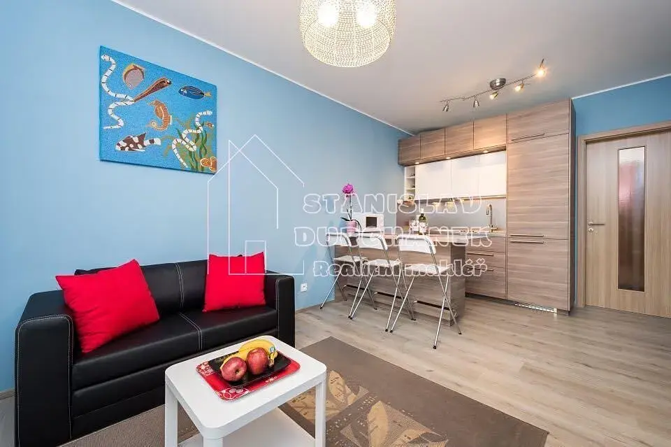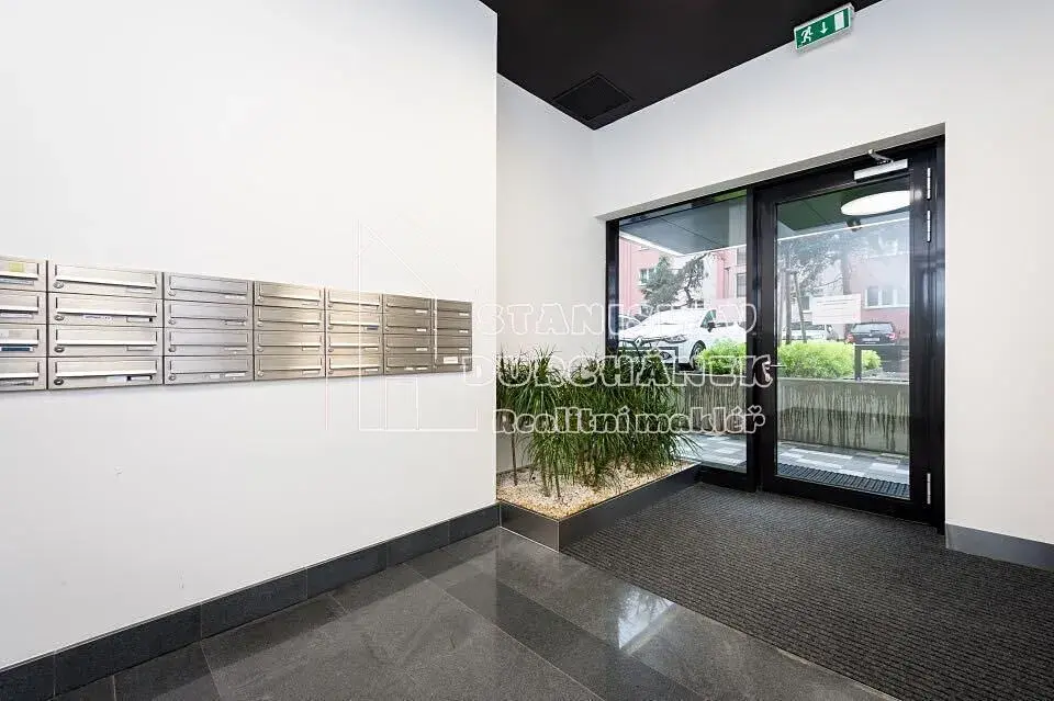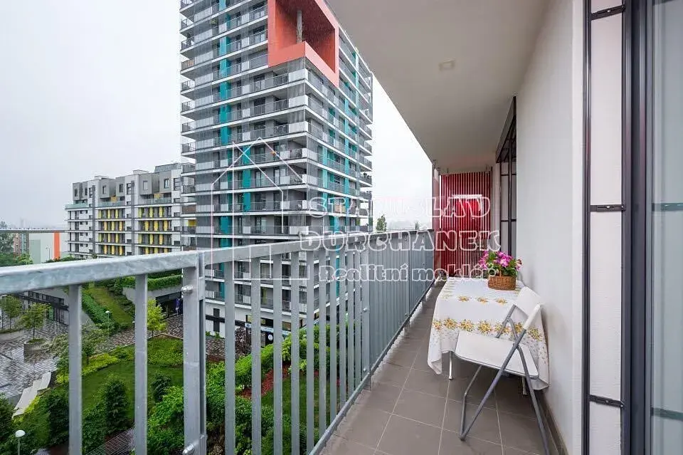 Prostor je situován v 5. podlaží osmipodlažního domu z r. 2016. Nabízí jako vybavený nábytkem a spotřebiči (viz foto). Okna a lodžie jsou orientovány na východ.