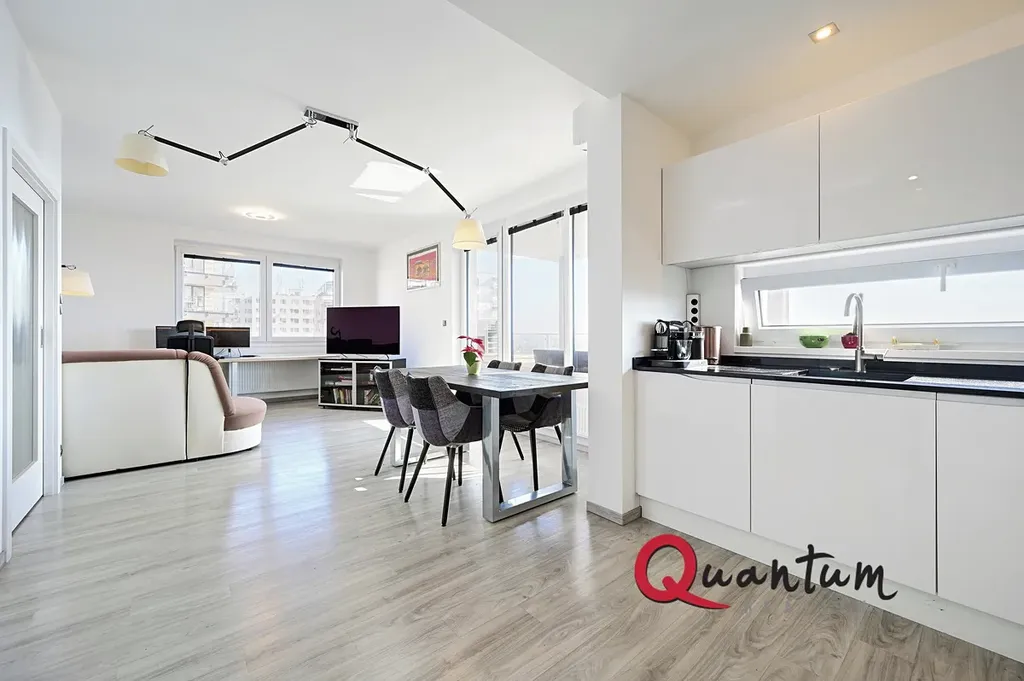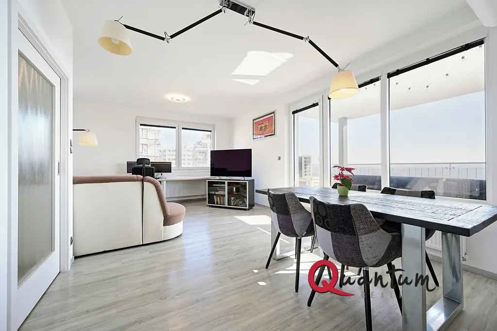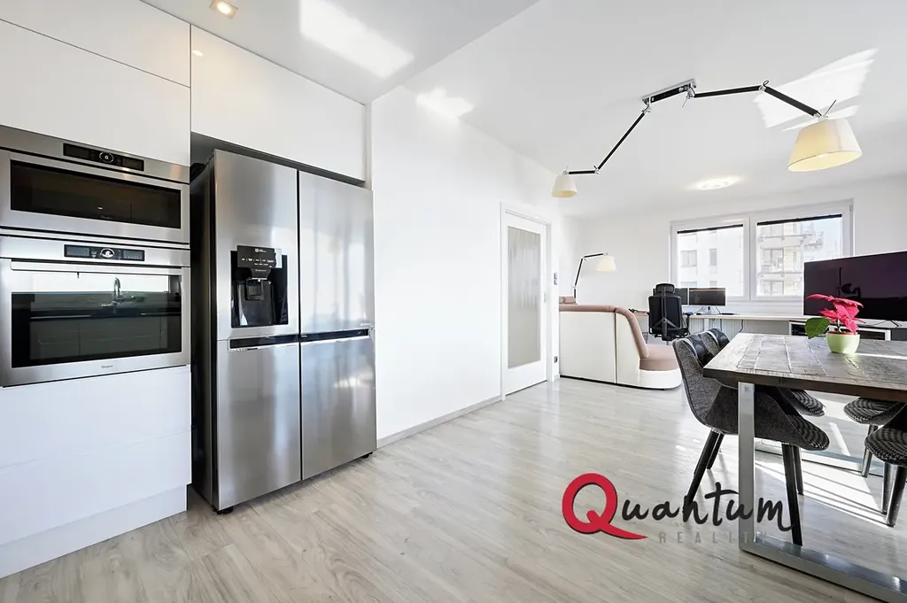 Nabízíme k dlouhodobému pronájmu exkluzivní byt 4+kk o ploše 96 m2 + prostorný balkon 12 m2 s jedinečným výhledem do lesoparku Hostivař nedaleko Hostivařské přehrady. Byt se nachází v 5. podlaží devítipodlažní novostavby z r. 2018, v žádané a výborně dostupné lokalitě. Jedná se o jednu z budov developerského projektu Nad Přehradou, který má vlastní velkou oplocenou zahradu s dětskými hřišti a venkovním grilem s posezením.