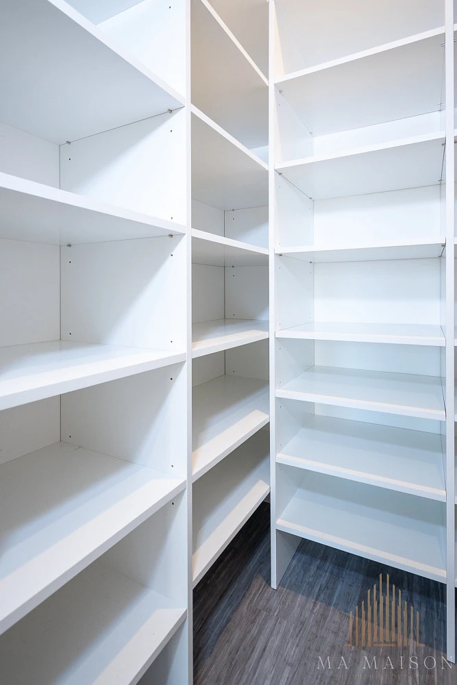 Obývací pokoj je zařízen rohovou sedací soupravou, která má zabudovaný úložný prostor. Dále je zde k dispozici konferenční stolek, TV stolek a TV. Součástí obývacího pokoje je kuchyňská linka, která je kompletně zařízená včetně všech potřebných spotřebičů. Je zde k dispozici varná deska, trouba, lednice s mrazákem, digestoř, mikrovlnná trouba a pračka. Linka je ve tvaru "U" a disponuje menším barem a dvěma barovými židlemi. Součástí obývacího pokoje je rovněž jídelní stůl se čtyřmi jídelními židlemi. Ložnice je vybavena manželskou postelí vč. roštů a matrace. Dále nočními stolky s lampičkami a velkou vestavnou skříní s posuvnými dveřmi. Vedlejší dětský pokoj je opět kompletně zařízen. Najdeme zde rozkládací postel (možné 2 místa), šatní skříň, komodu, cvičící žebřiny a poličky. Koupelna je vybavena vanou, umyvadlem se zrcadlem s dotykovým ovládáním osvětlení a poličkami. Toaleta je oddělena a nachází se hned vedle koupelny. Všechny místnosti jsou spojeny díky chodbě, kde najdeme skrytou komoru za posuvnou zrcadlovou stěnou. Tato komora nabízí další úložný prostor s policovým systémem.