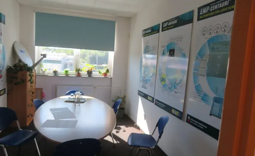 Konstrukce výrobní budovy je smíšená, ze železobetonových sloupů s panelovým opláštěním a hliníkovými okny. Zde se nachází sklady, dílny, výrobní haly, jídelna a zázemí pro zaměstnance. Budova je vytápěna plynovým kotlem či tepelnými čerpadly (vzduch/voda), která zajišťují vytápění i klimatizaci. V budově se nachází nákladní výtah s nosností 2 400 kg a výtah jídelní.