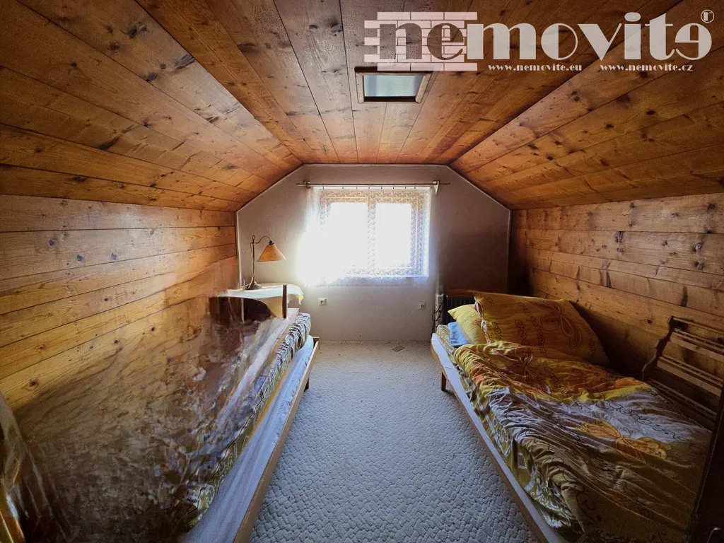 Součástí pozemku je částečně podsklepená zděná chata o zastavěné ploše 67 m², která nabízí v přízemí dvě obytné místnosti, kuchyni, verandu a koupelnu v přízemí, v podkroví další dvě místnosti. Dále je zde zděná technická stavba o ploše 34 m² se dvěma místnostmi, kuchyňským koutem, samostatným WC a dílnou. K dispozici je také dřevěná kolna na nářadí, dřevník a dvě betonové jímky na dešťovou vodu.