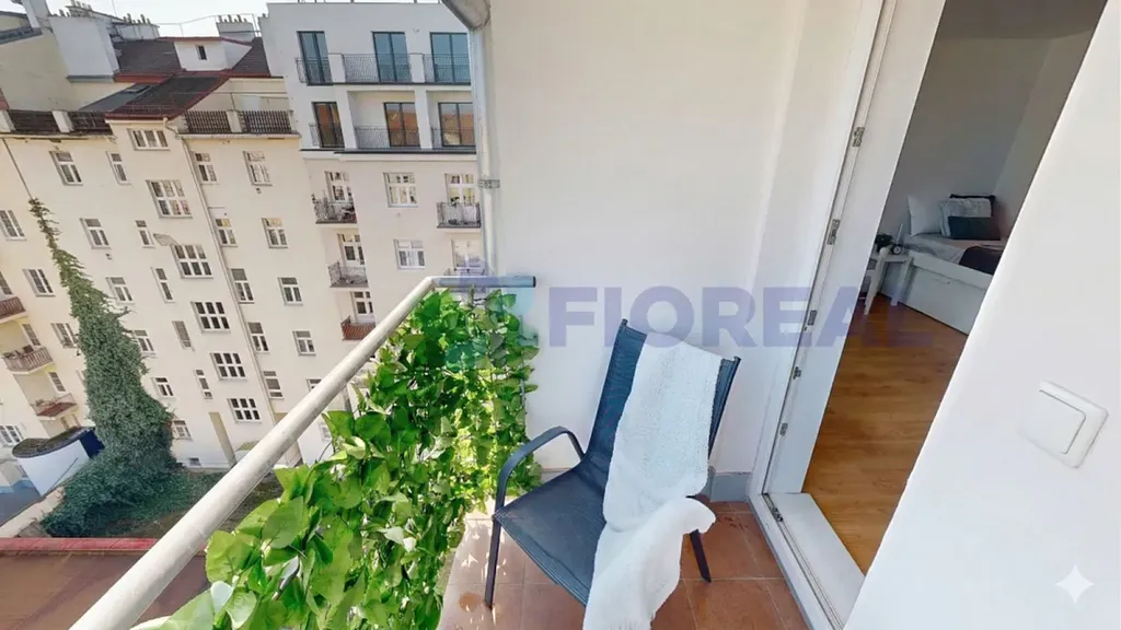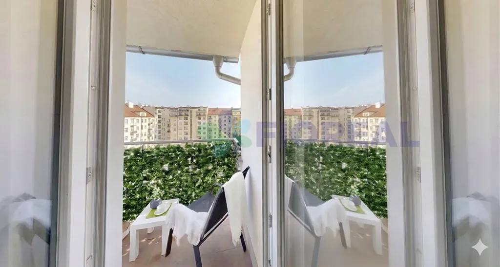 Z obývací části vstoupíte na balkón orientovaný do klidného vnitrobloku. Skvělé místo pro ranní kávu, večerní sklenku vína nebo k práci či relaxaci pod širým nebem.
