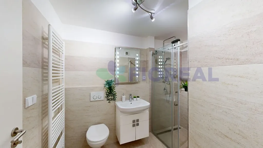 V prostorné koupelně najdete sprchový kout, wc a k dispozici je také pračka. Ohřev vody zajišťuje vlastní plynový kotel.