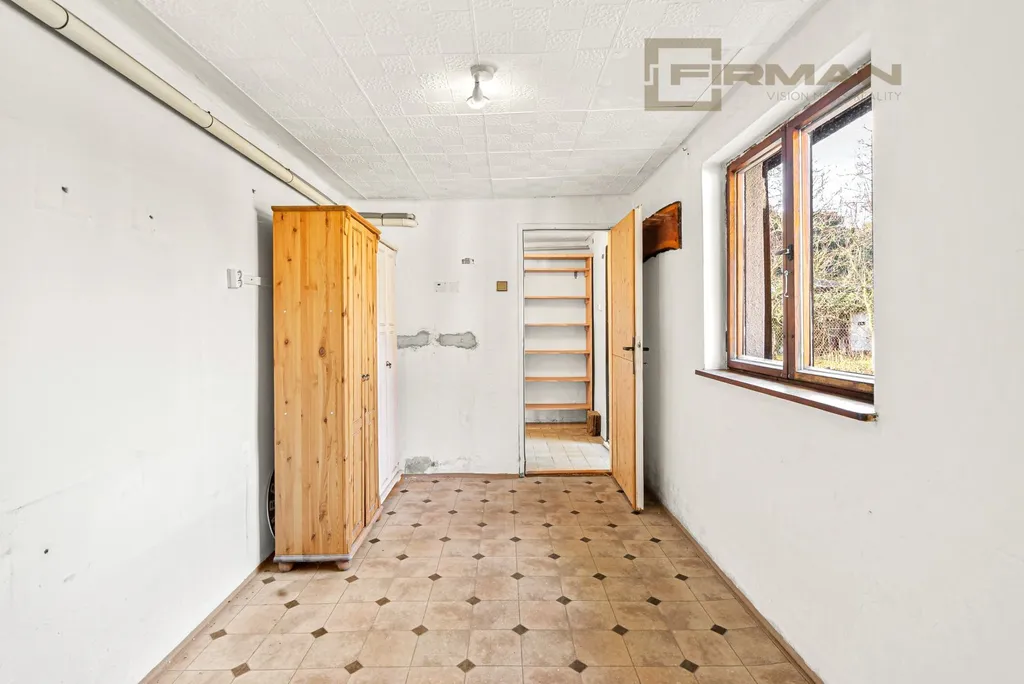 V přízemí se nachází vstupní hala, pracovna, prostorný obývací pokoj, samostatná kuchyně s jídelním prostorem, koupelna, oddělené WC a další pokoj. Praktickým bonusem jsou také technické místnosti a sklepních prostor o celkové ploše téměř, které mohou sloužit jako dílna, sklad nebo zázemí pro koníčky. Celková plocha přízemí nabízí téměř 90 m² prostoru, který poskytuje dostatek místa pro komfortní rodinné bydlení a zároveň nabízí široké možnosti úprav a modernizace podle představ budoucího majitele. Celý obytný prostor domu je navíc řádně zkolaudovaný k bydlení, což novému majiteli přináší jistotu a klid při jeho užívání.