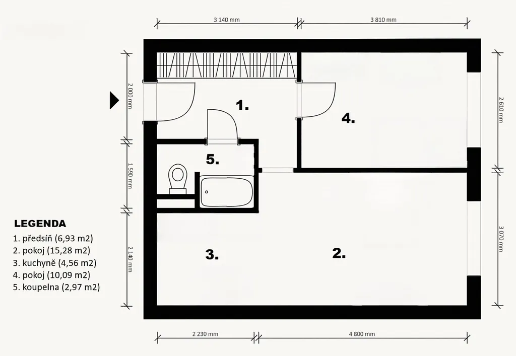 Byt je vhodný jak pro vlastní bydlení, tak jako investice k pronájmu.