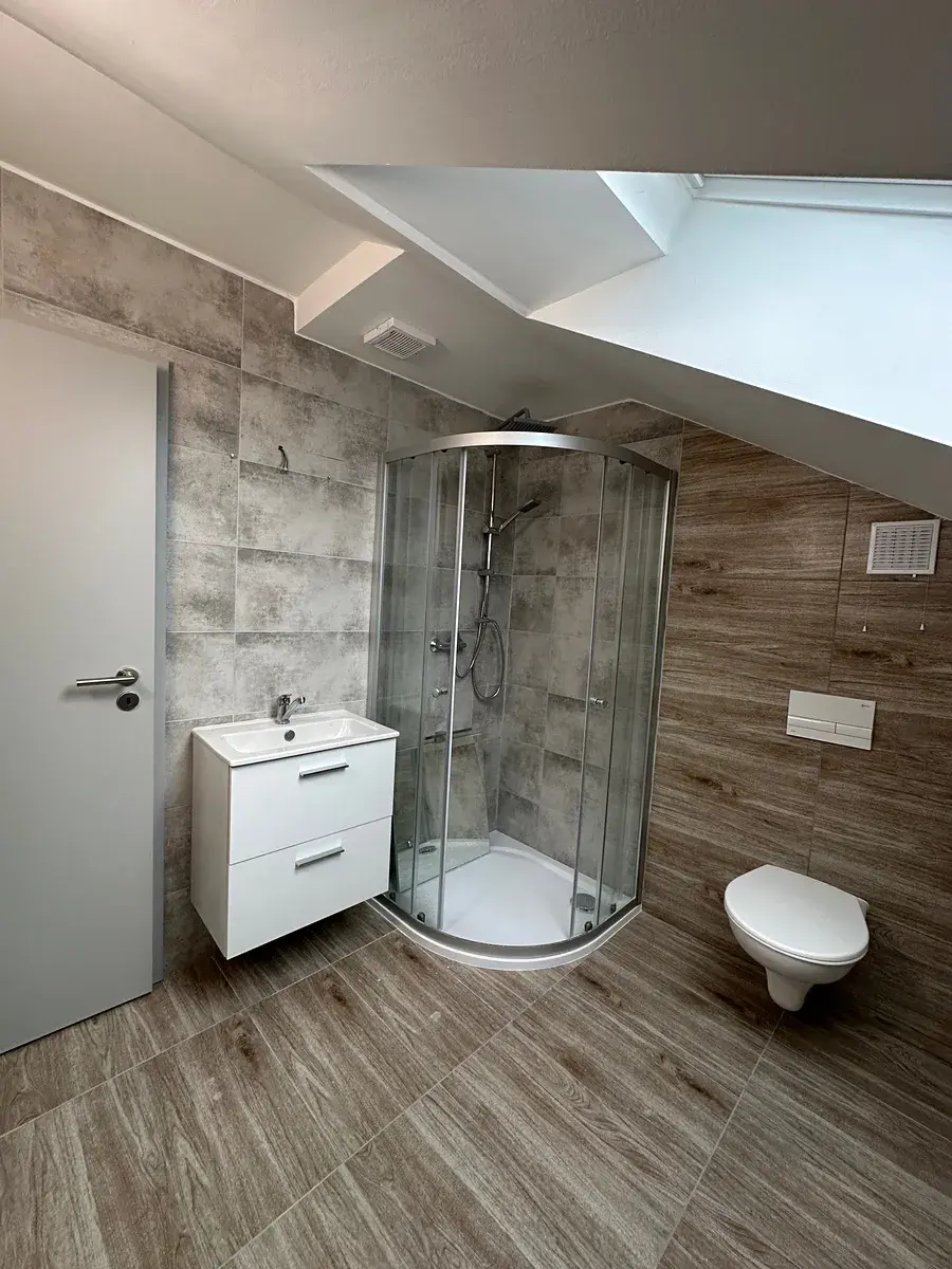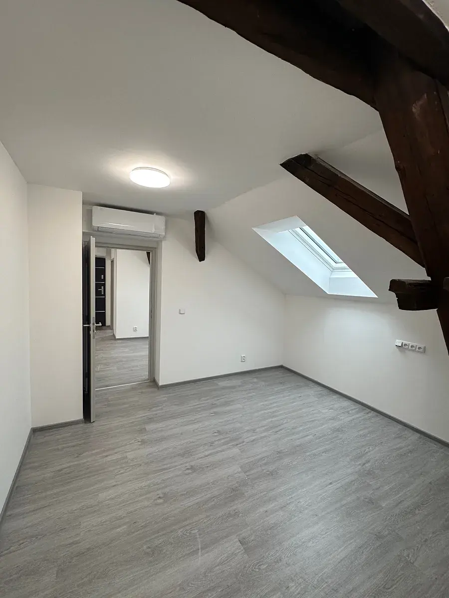 Veškeré sanitární vybavení je z kvalitních materiálů. Okna zn. Velux, dveře Porta Doors, sanita od firmy Ptáček, tepelné čerpadlo zn. Dražice. K bytu náleží sklepní prostor.