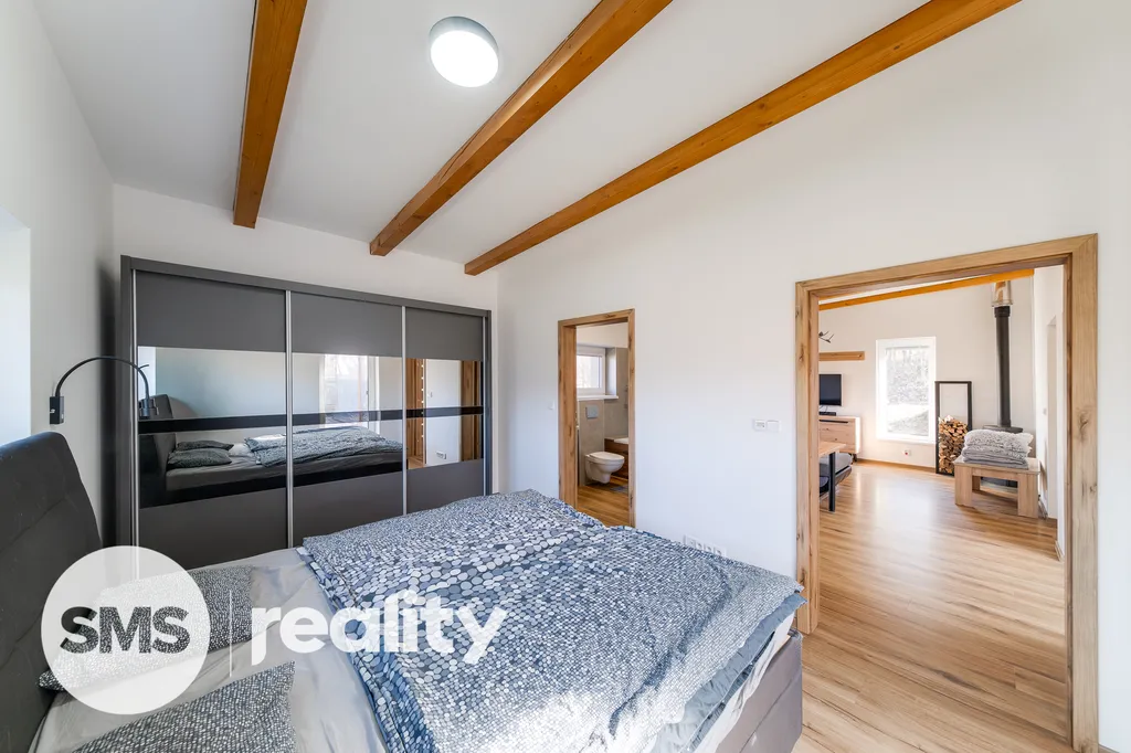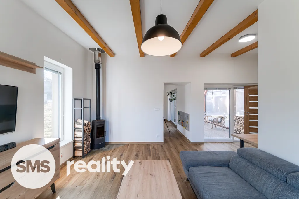 Dům o užitné ploše 99 m² má praktickou dispozici 3+1, která odděluje zónu pro vaření od relaxační části. V obývacím pokoji jsou dominantou krbová kamna, která jsou ideální pro vytvoření útulné atmosféry během dlouhých zimních večerů a zároveň slouží jako efektivní zdroj tepla v kombinaci s podlahovým topením. Soukromé zázemí tvoří ložnice s přímým vstupem do vlastní koupelny a další samostatný pokoj, přičemž v domě naleznete ještě druhou, samostatnou koupelnu pro maximální komfort všech členů domácnosti.