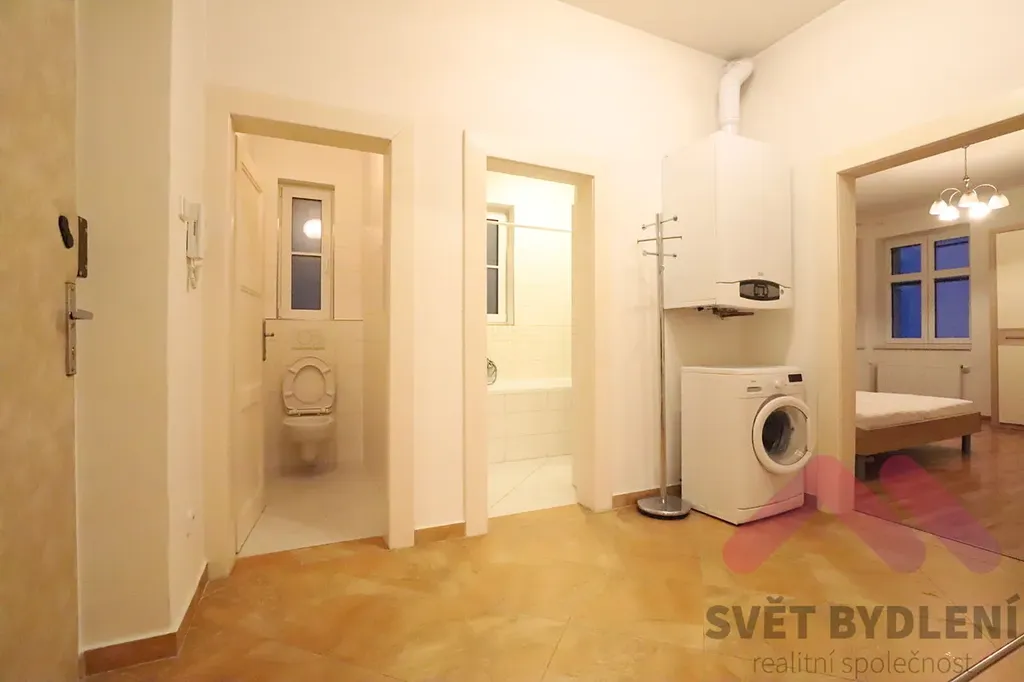 Byt se nachází v přízemí prvorepublikové vily (ve vile jsou pouze 3 byty), která prošla kompletní rekonstrukcí, okna jsou orientována do zahrady. Byt je kompletně vybavený moderním nábytkem a vestavěnými skříněmi (oproti fotografiím je v bytě navíc rohová sedací souprava) + kuchyňská linka s vestavěnými spotřebiči (myčka, lednička s mrazákem, varná deska apod..). V předsíni je umístěna pračka. Dům se nachází v klidné vilové lokalitě s výbornou dostupností do centra (cca. 5min chůze se nachází metro Kačerov). Vytápění a ohřev vody zajišťuje samostatný plynový kotel. Byt je zabezpečen alarmem s možností napojení na PCO. Parkování, které je již zahrnuto v ceně nájmu je možné na zahradě vjezd na po pozemek je řešen vraty na dálkové ovládání. Velkou zahradu je možné využívat k posezení, grilování apod.. Volné ihned!
