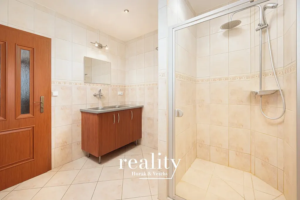Součástí podkroví je také prostorná místnost určená pro koupelnu s vanou (9,40 m²) – aktuálně v nedokončeném stavu, což novému majiteli dává možnost přizpůsobit prostor podle vlastních představ.